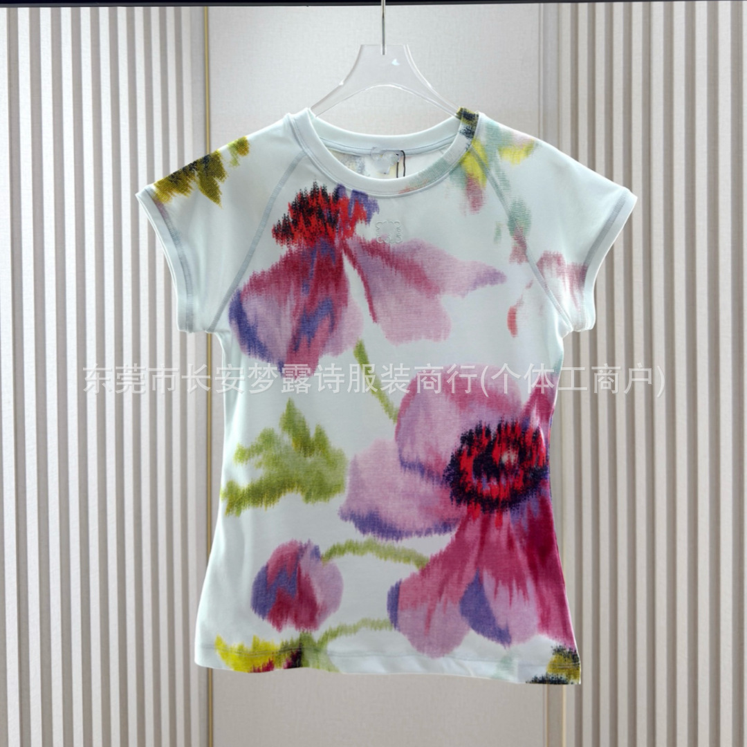 Luo Family Round-neck short-sleeved T-shirt for Women's 2025 Summer New style Totem logo floral active print fashion top