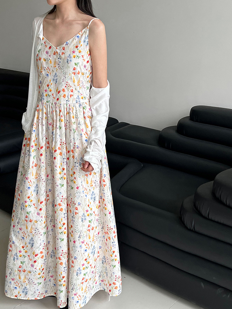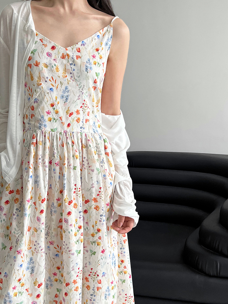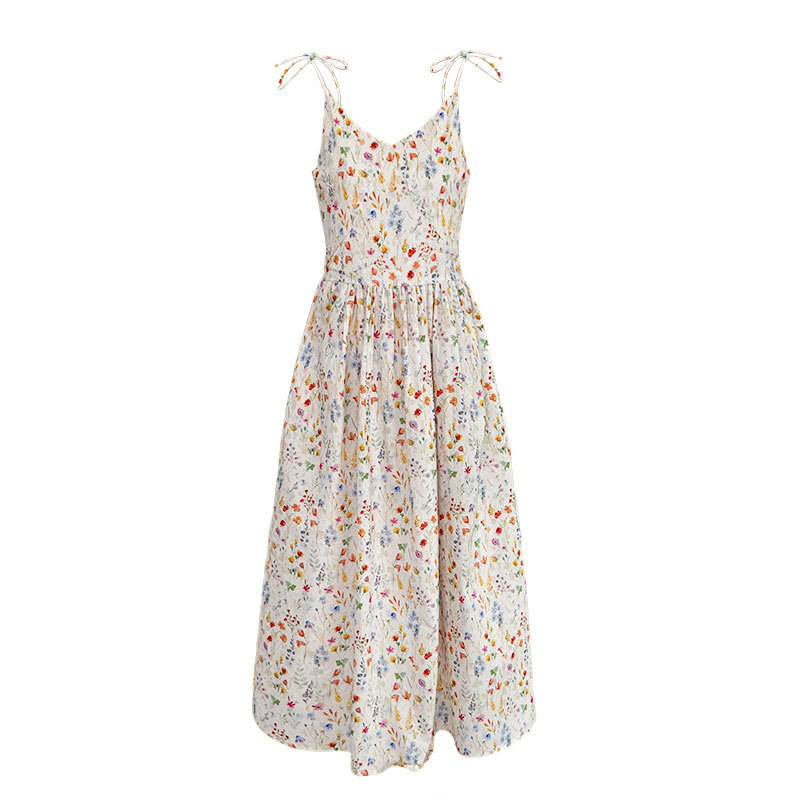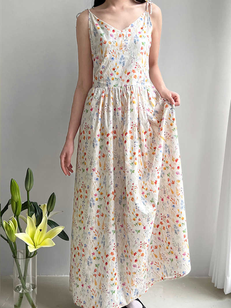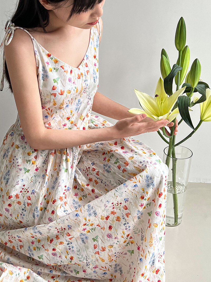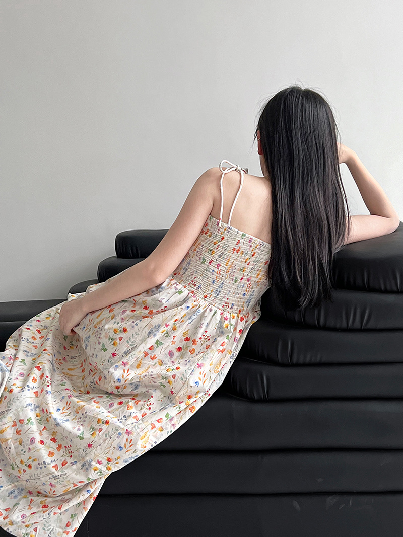 Luxi's fresh, gentle and sweet floral lace-up halter dress is a new summer dress for women with a cinched waist and a slimming look. 8773