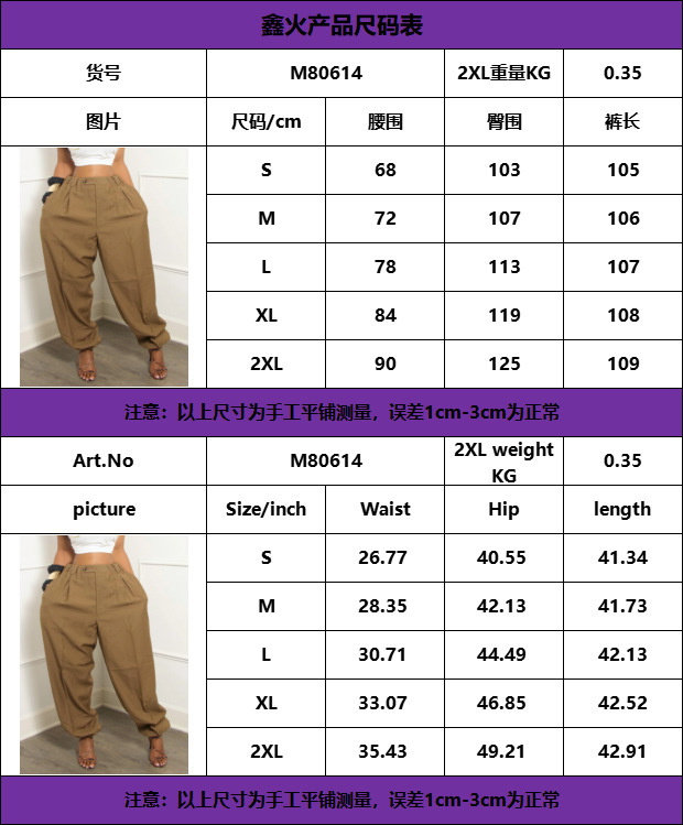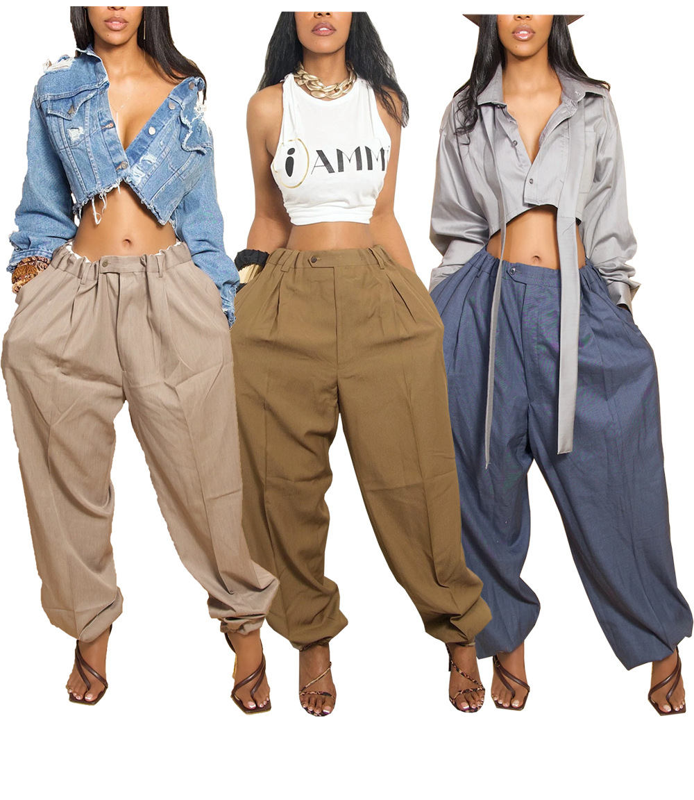 M80614 Cross-border European and American women's clothing, new Amazon fashion, casual, loose and trendy tapered long pants, capri pants