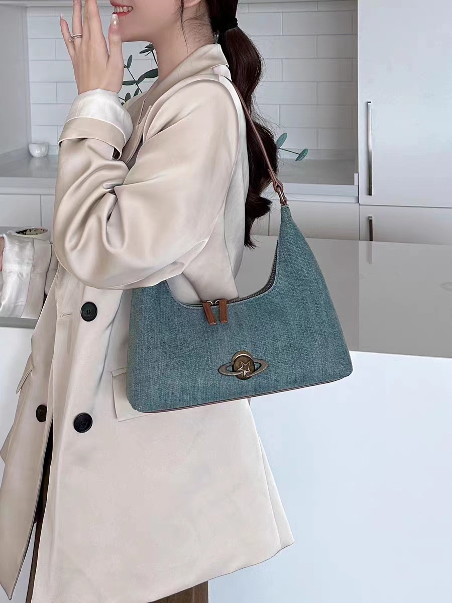 MA HYYGA Wandering Planet Denim niche underarm bag, high-end single-shoulder bag, women's retro bag, handbag