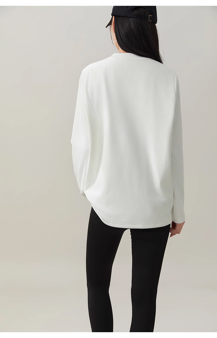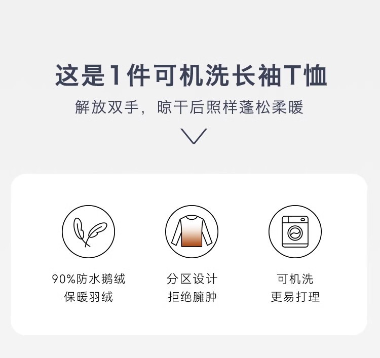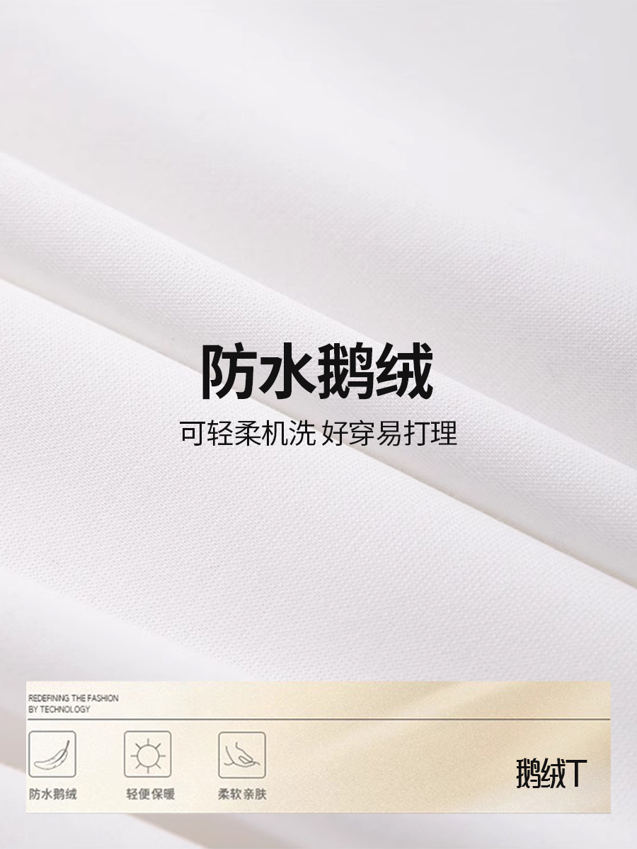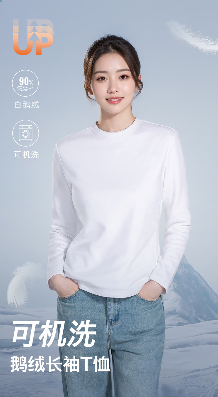 Machine-washable 90 goose down T-shirt, long-sleeved women's down warming inner layer, autumn and winter warm top, three-proof round-neck sweatshirt, white