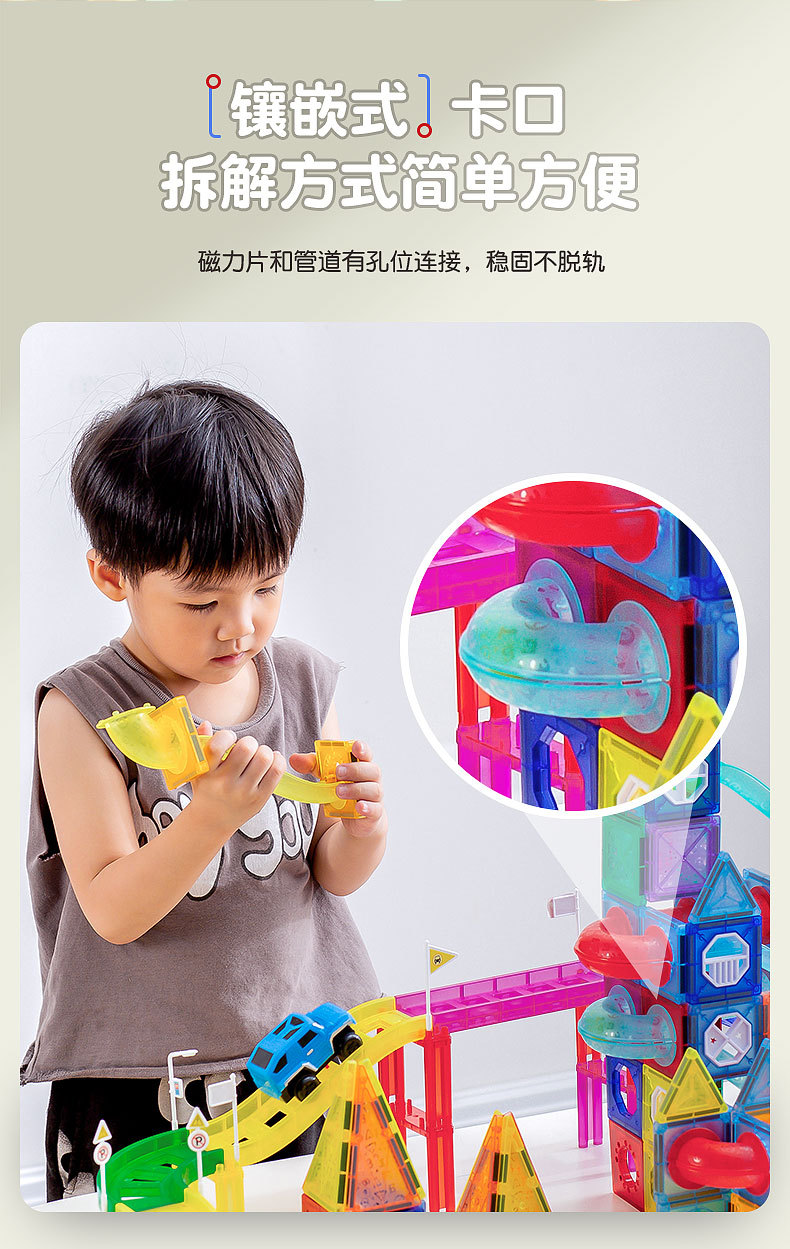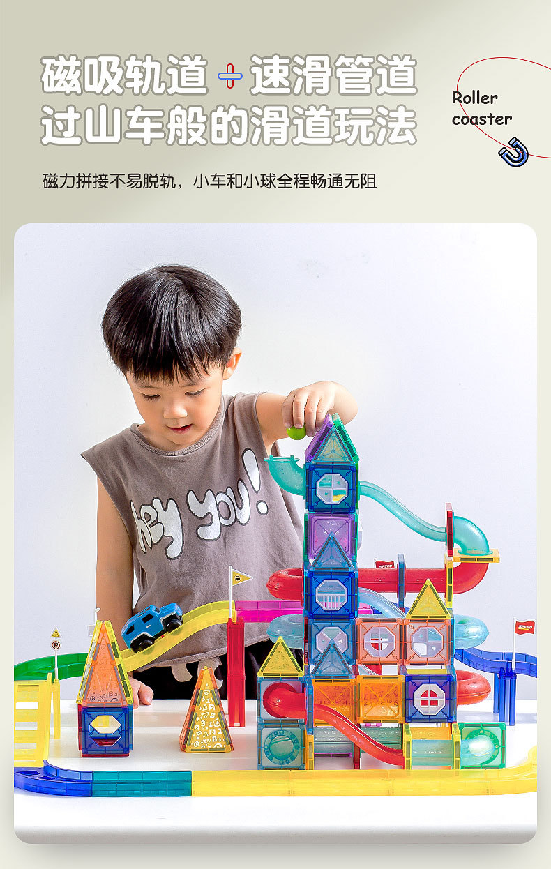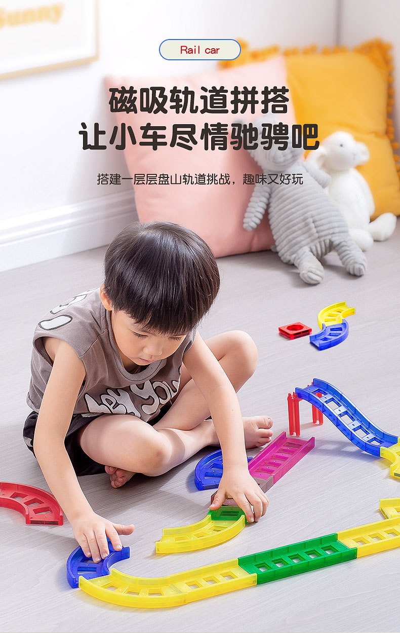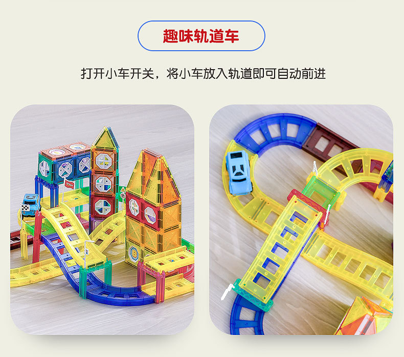 Magnetic track, magnetic building block assembly, children's toys, electric racing cars, girls and boys, magnetic track sets wholesale
