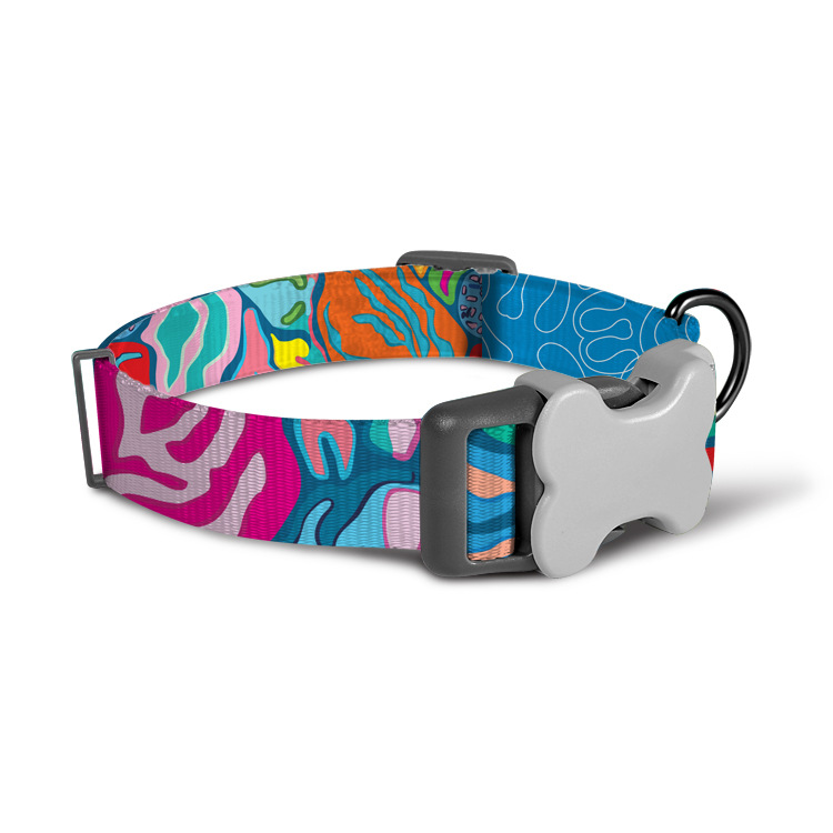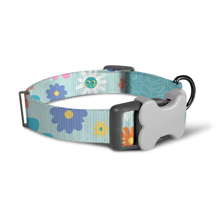 Maidi's new pet supplies factory wholesale and retail bone buckle double-sided fashionable printed polyester dog necklaces, collars and dog neck covers