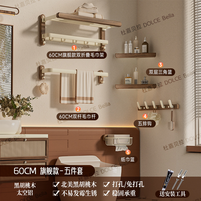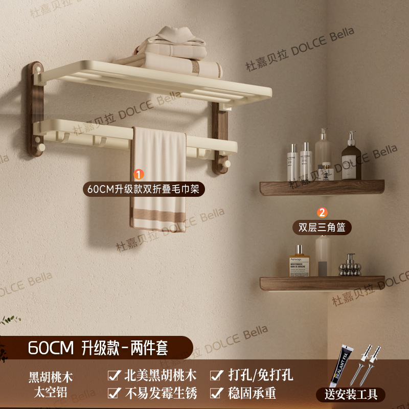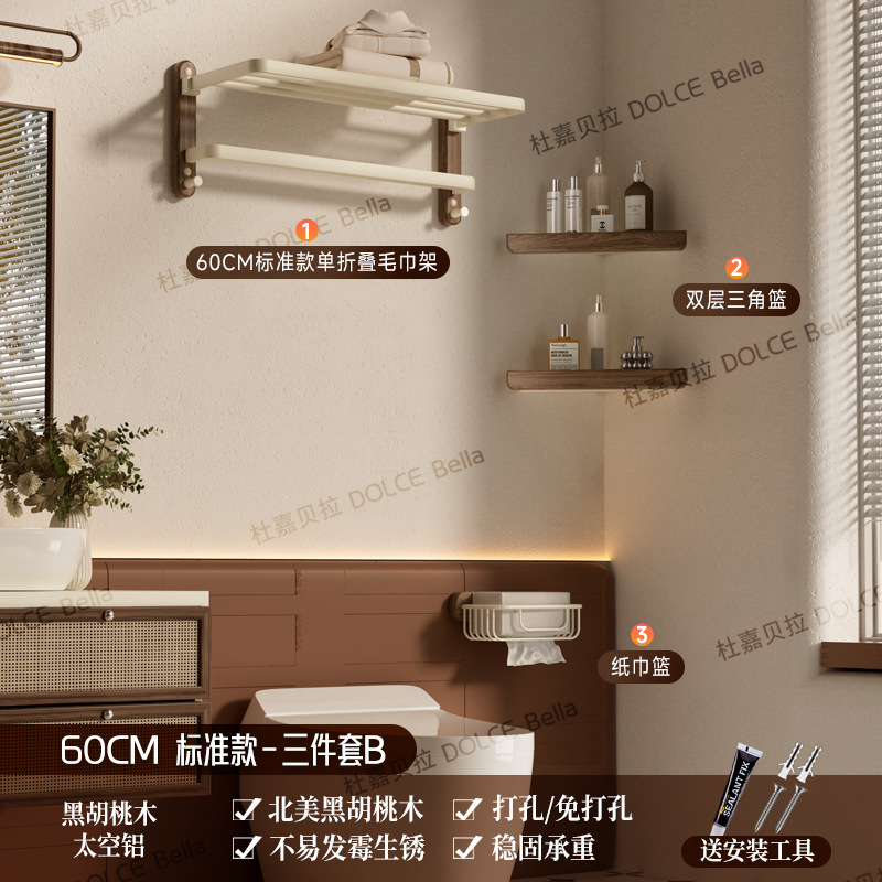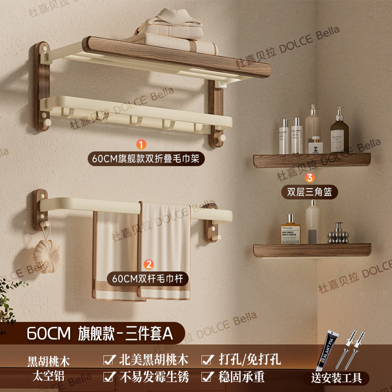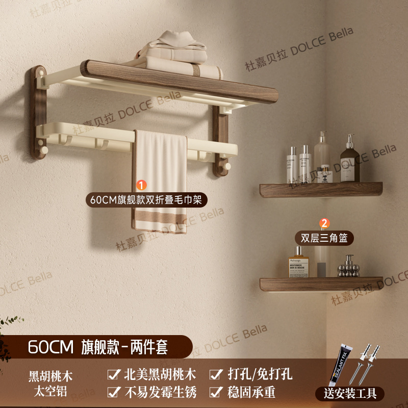 【 North American Black Walnut 】 Flagship folding bath towel stand 60cm