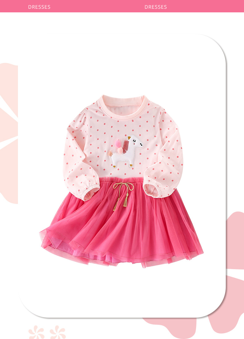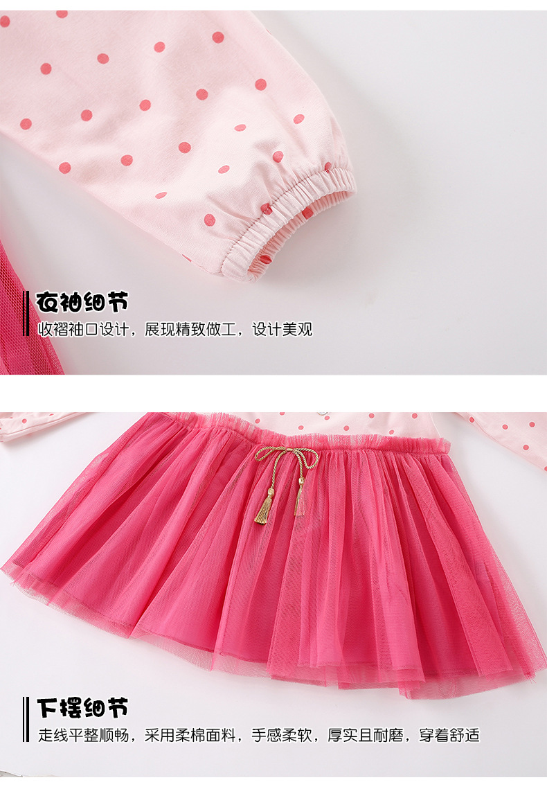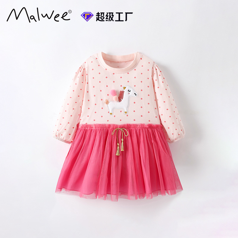 malwee children's dress Autumn and Winter new style European and American small and medium-sized children's dress, stylish little girl round neck long-sleeved girls' dress