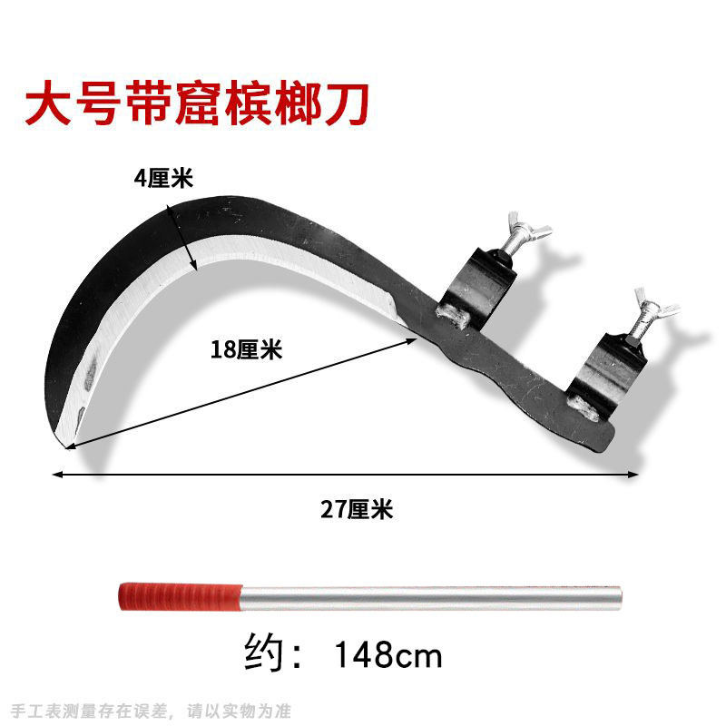Manganese steel betel nut knife, agricultural tool, water plant cutting knife, high-altitude fruit picking, banana pruning, household weeding scythe, multi-functional