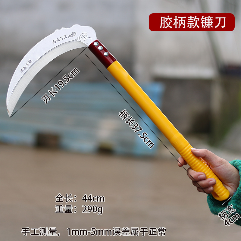 Manganese steel sickle, agricultural lawn mowing knife, outdoor weeding knife, sharp fishing knife for household use, corn harvesting knife, farm tool manufacturer, firewood knife