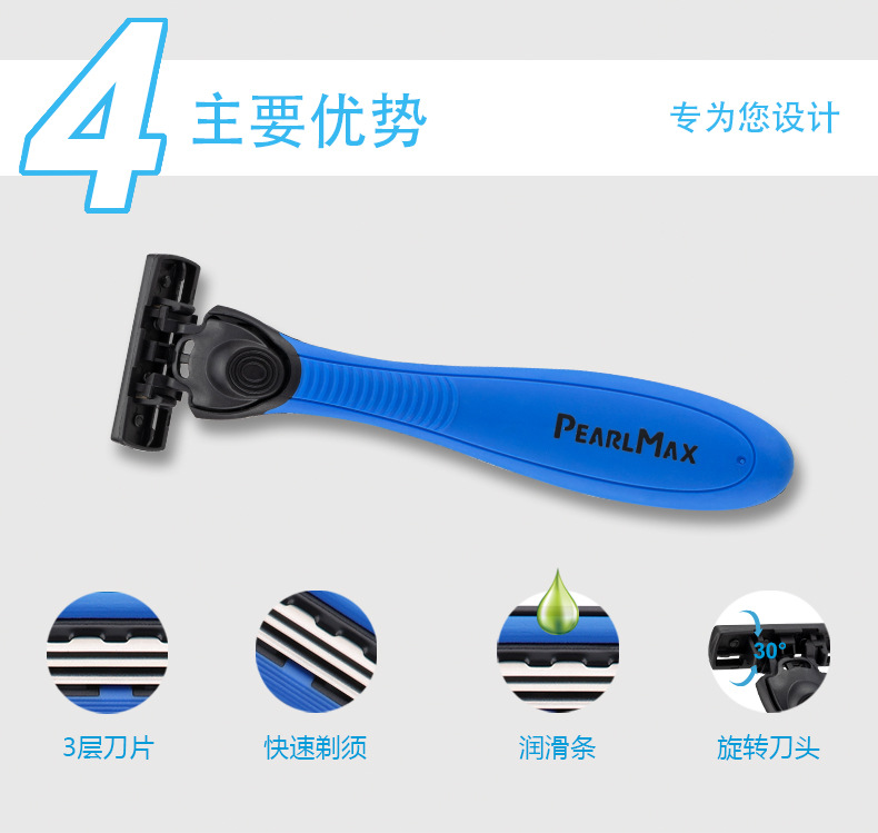 Manual Pearl Max men's razor, three-layer replaceable razor head, old-fashioned shaving knife