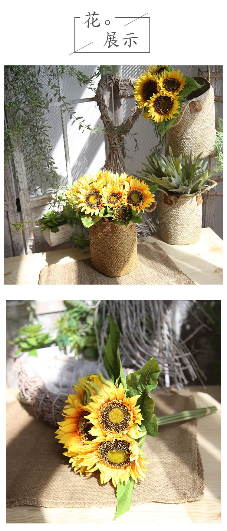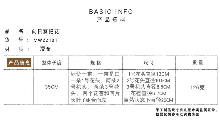 Manufacturer's artificial flowers, sunflowers, bouquets, artificial flowers wholesale, wedding hand-held silk flowers export, home decoration MW22101