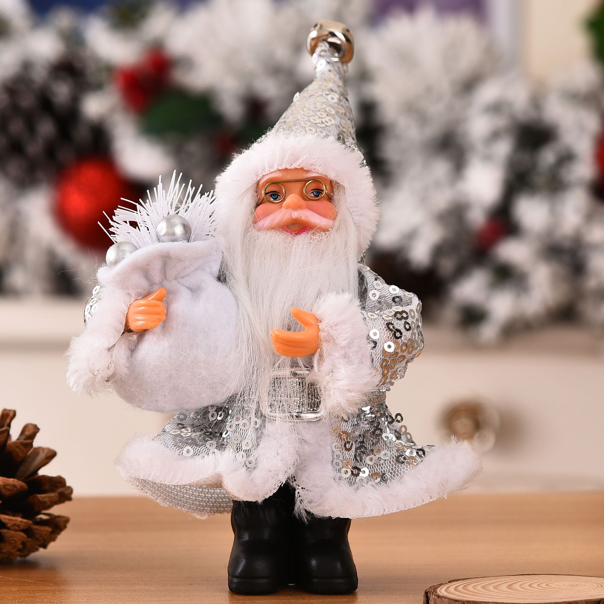A 19-centimeter-tall standing elderly person in a red dress with a white border