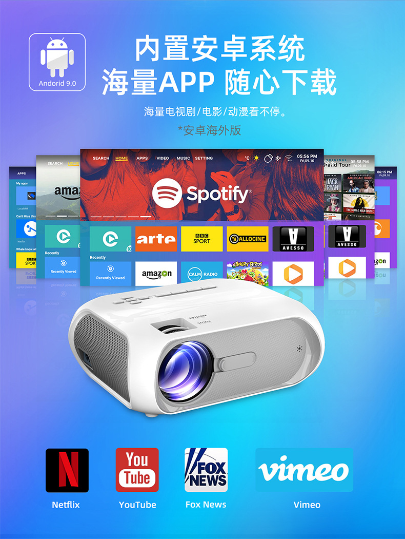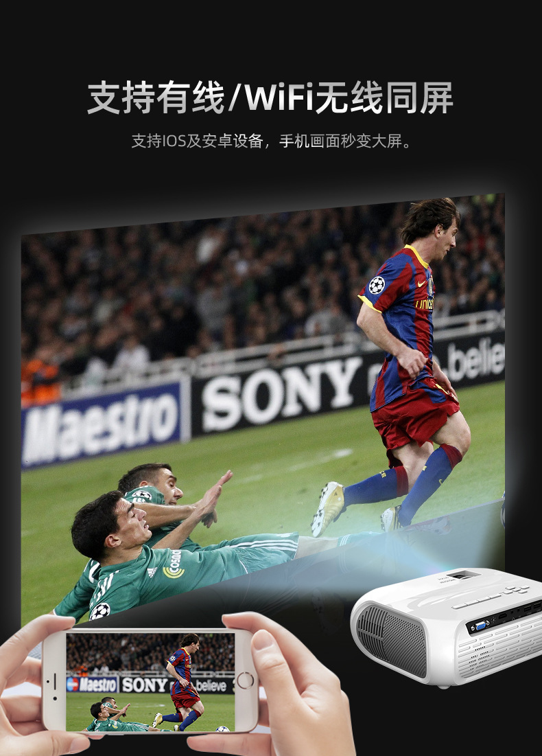 Android version features: Can read USB flash drives, portable hard disks, and SD cards. Connect the HDMI cable to the computer. The AV cable connects the set-top box, DVD player, etc. It can be connected to wifi for online on-demand viewing. It can be wirelessly connected to mobile phones and tablets.