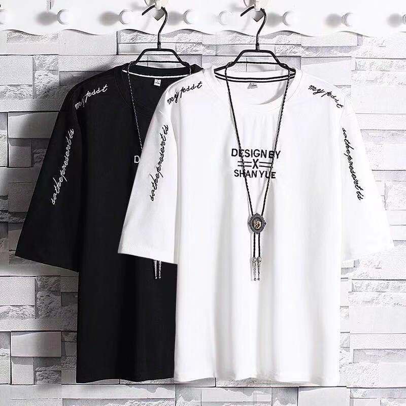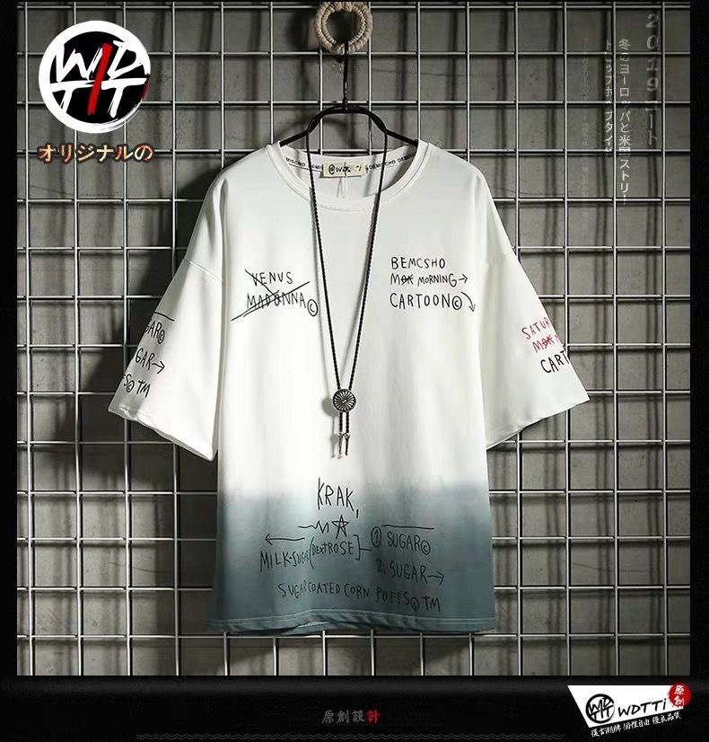 【 Manufacturer 】 Short-sleeved men's spring and summer loose Japanese five-quarter sleeve color-blocking and patchwork short-sleeved T-shirt, men's five-quarter sleeve cross-border
