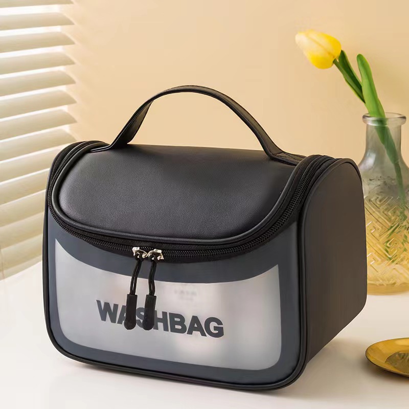Matte high appearance level large-capacity hand-held hook toiletry bag, PU multi-functional storage bag, simple skin care product storage