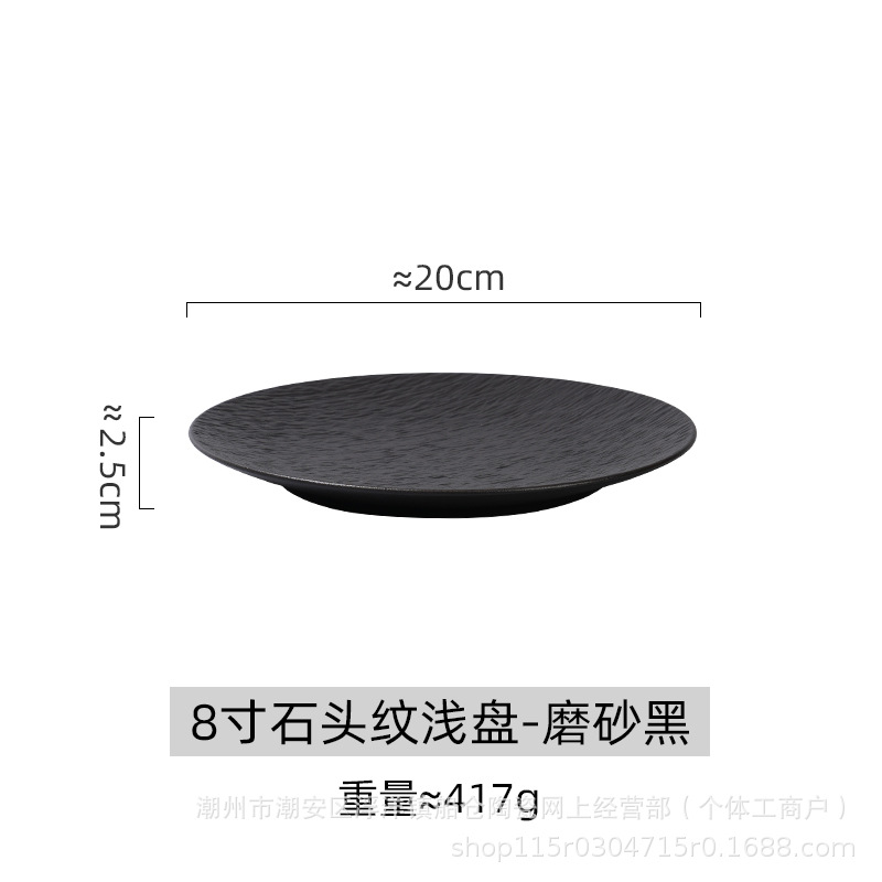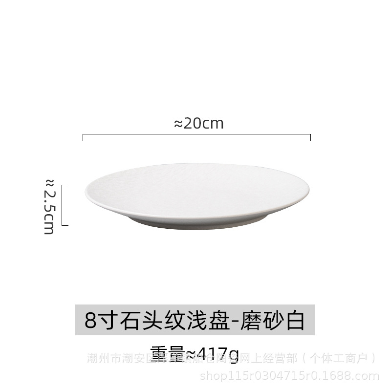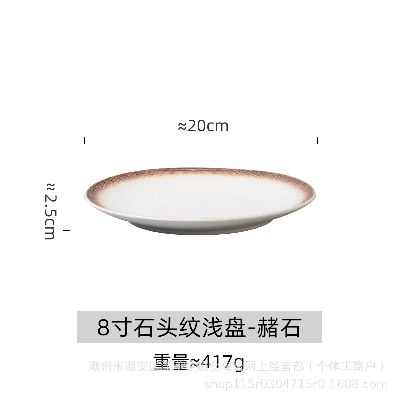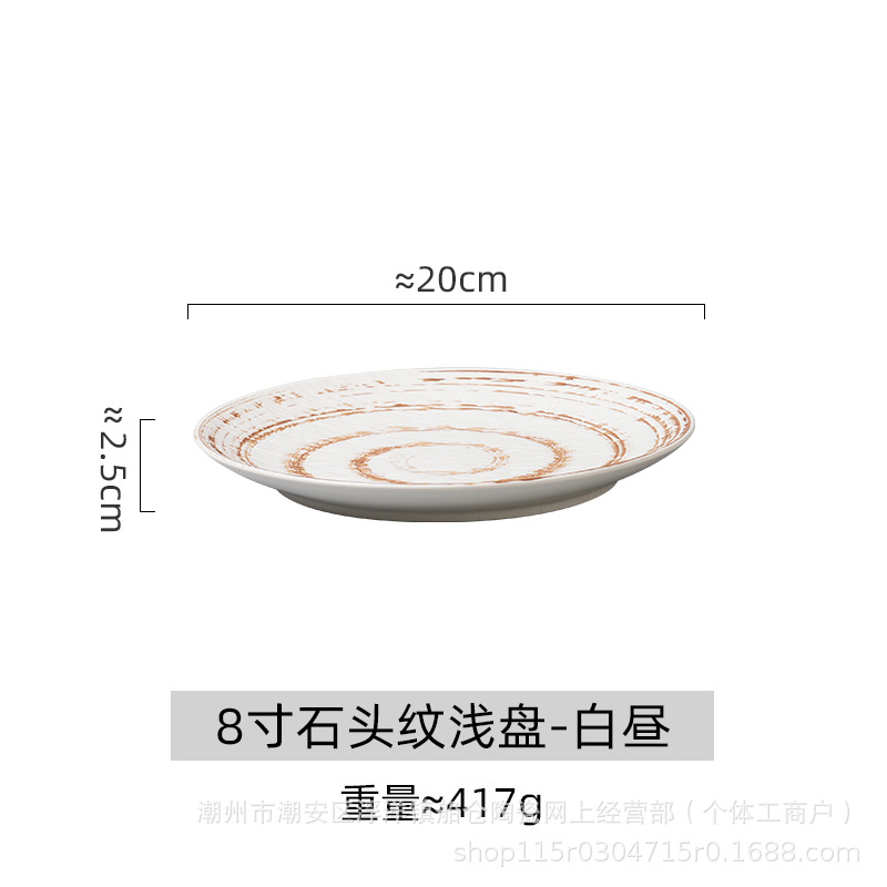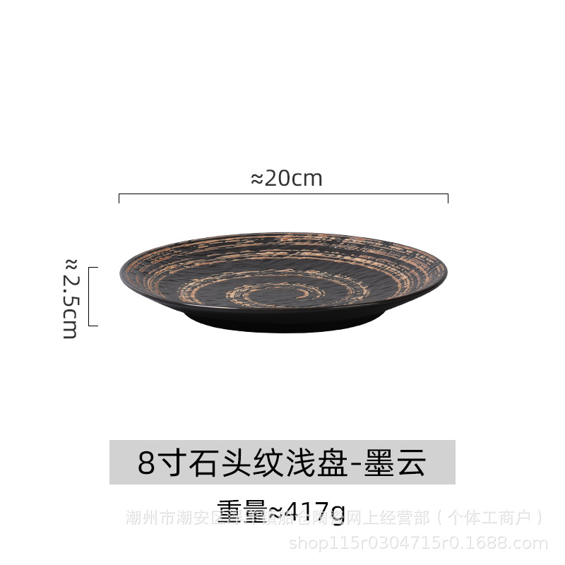 An 8-inch shallow plate with stone patterns, a cloud of ink