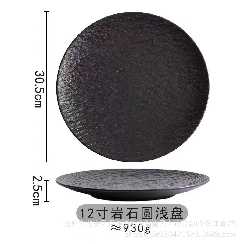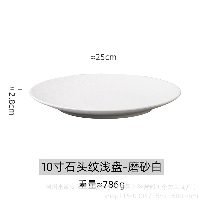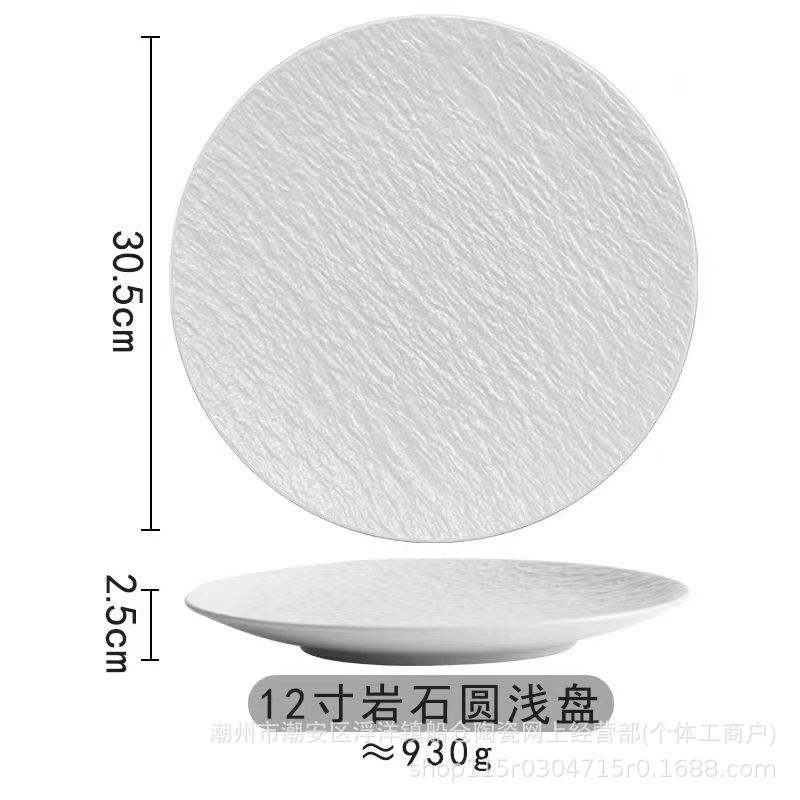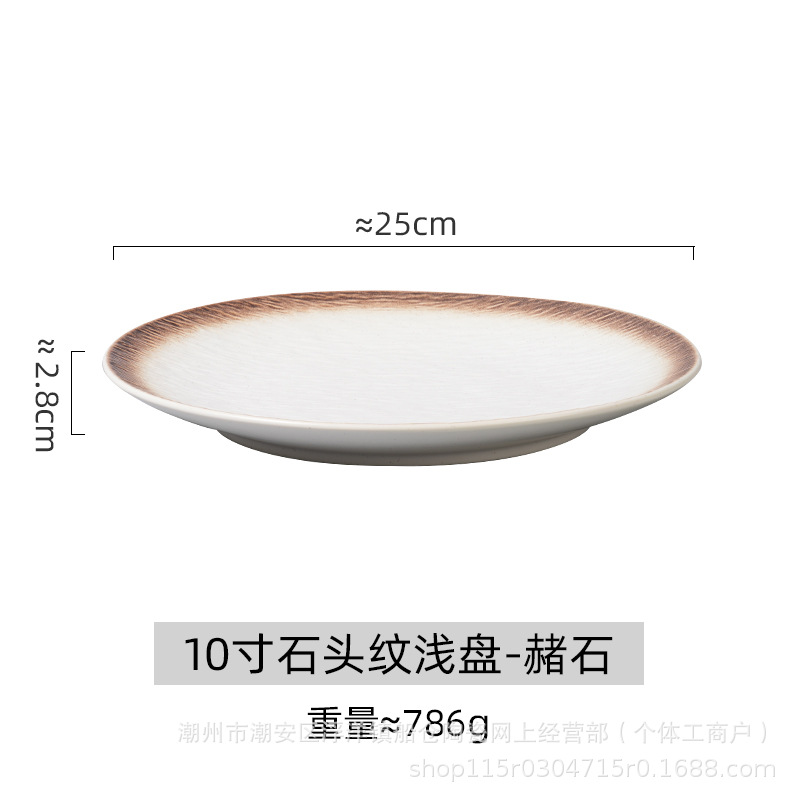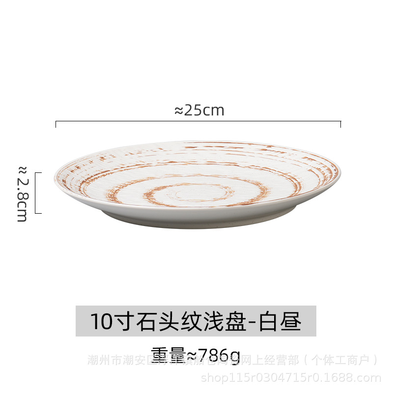An 8-inch shallow plate with stone patterns, a cloud of ink