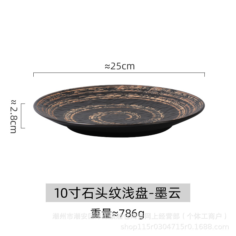 A 10-inch stone-patterned shallow plate with a cloud of ink
