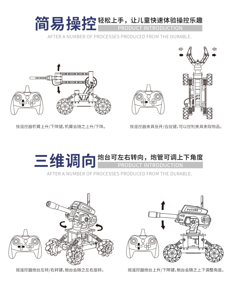 8. Multiple free combinations: It can be interactively assembled with mechanical arms and alloy DIY vehicles to achieve 2-in-1 or 3-in-1, doubling the fun.