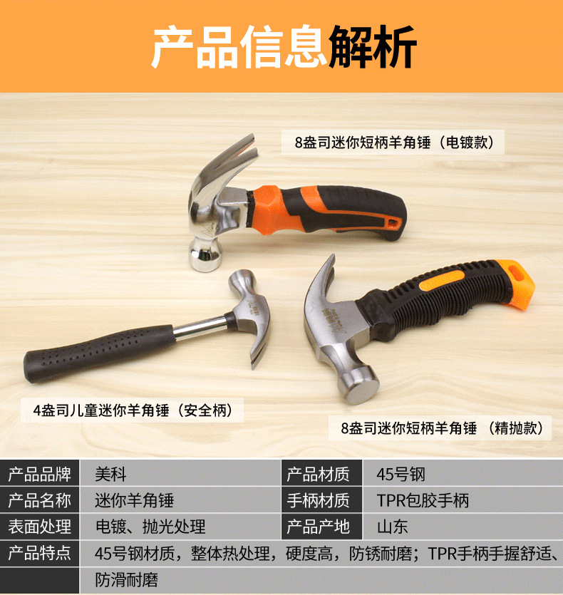 Meike household mini hammer, car escape tool, multi-functional horn hammer, children's hammer, small hammer