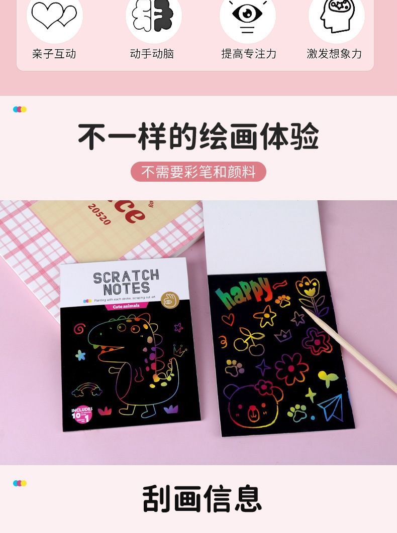 Meikede Factory's A4 thickened children's colorful scratch paper 16K - 8K in stock wholesale. Free shipping for large quantities