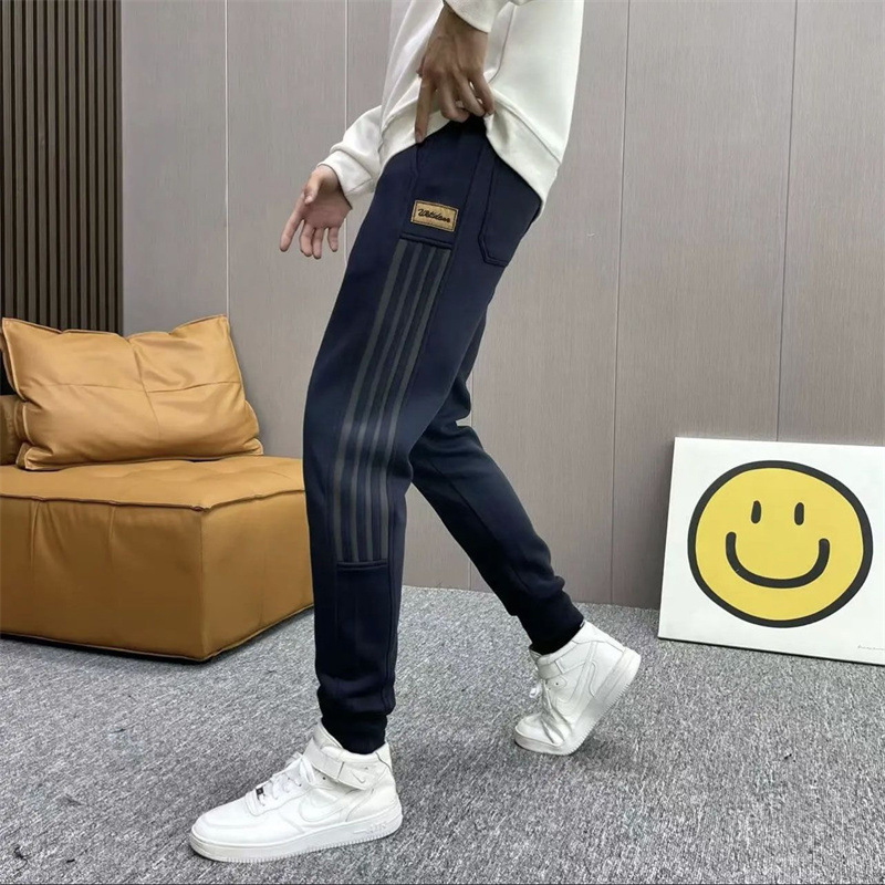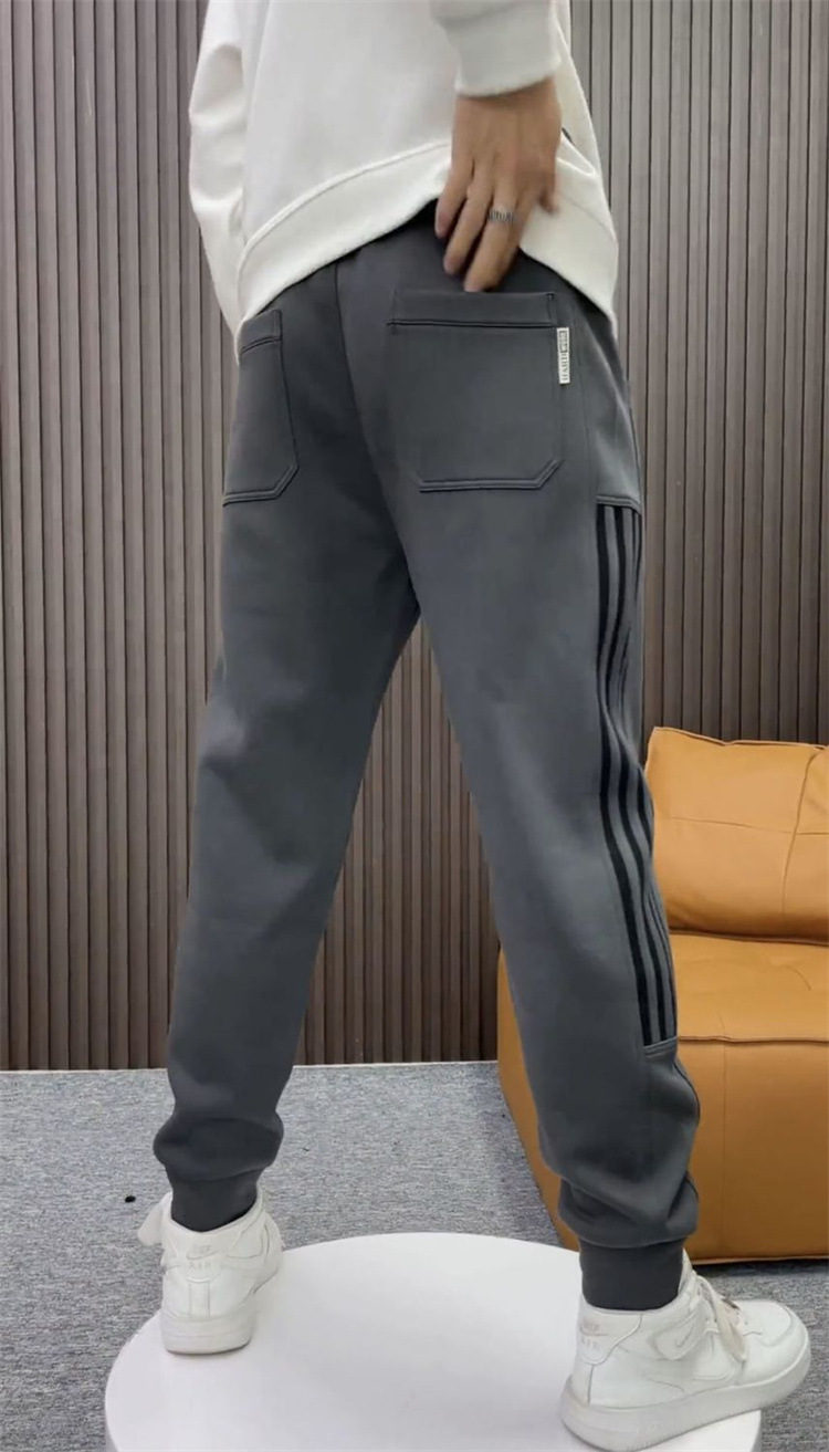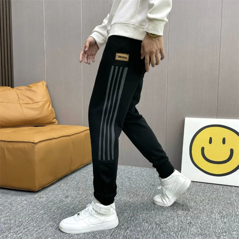 Men's 2024 autumn and winter sweatpants with fleece and thickened cuffs, three-bar casual sweatpants, loose Harem pants, and tight-fitting men's pants