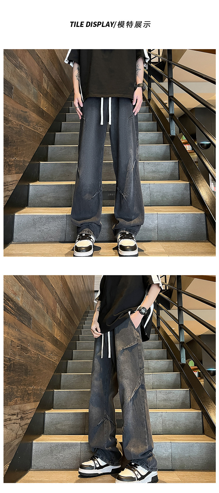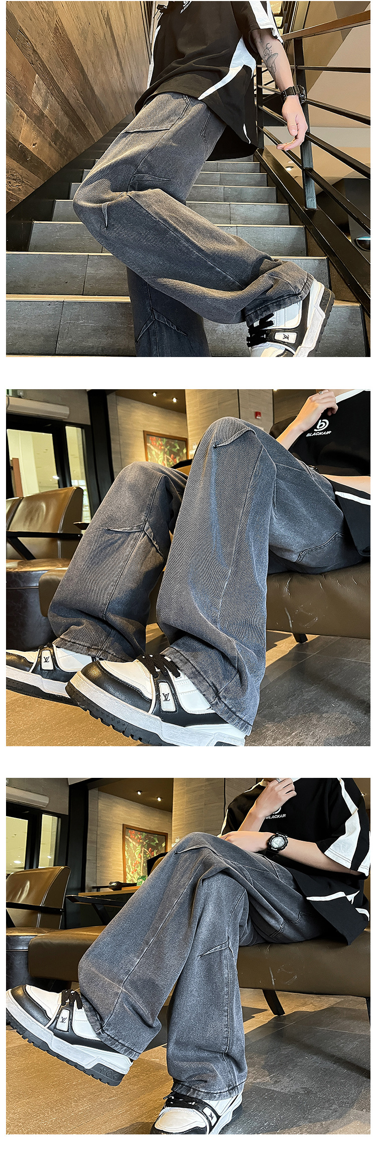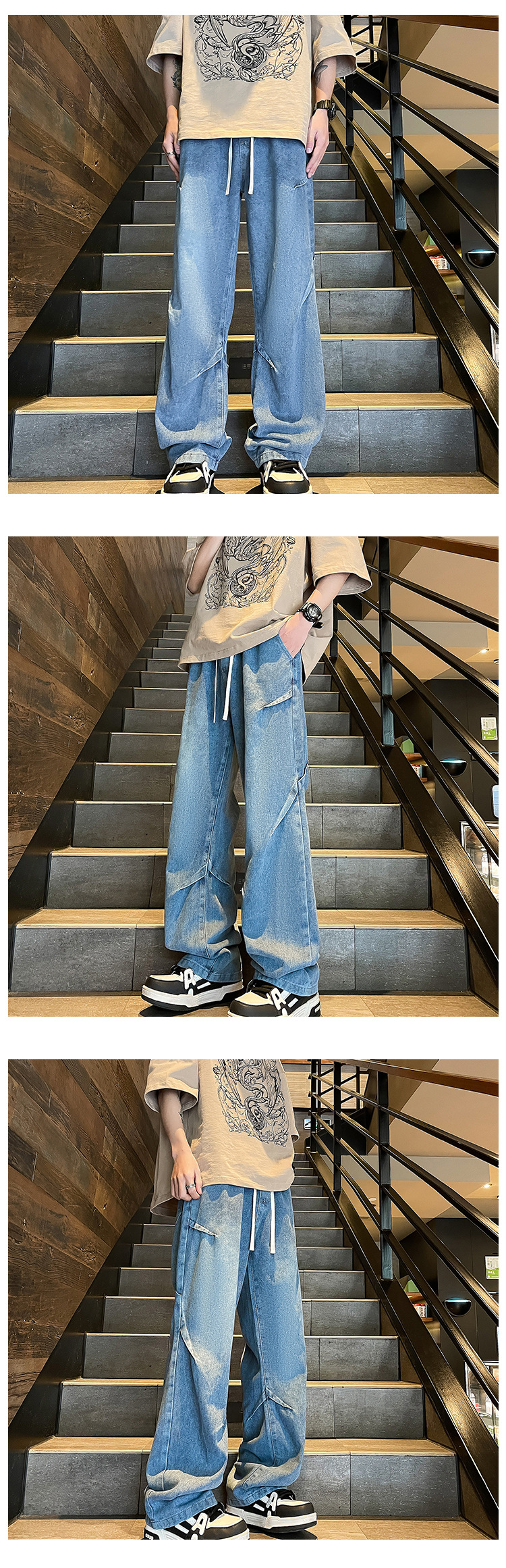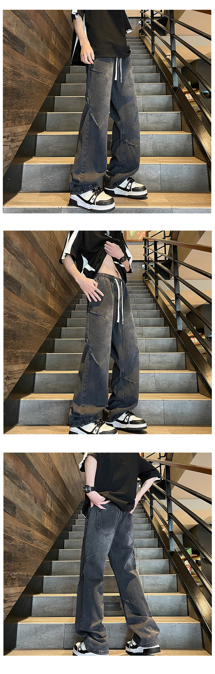 Men's 2024 Spring/Summer new Korean style trendy and individualistic slimming and leg-enhancing men's straight-leg casual jeans