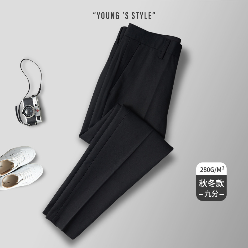 Men's 9-inch business casual trousers for commuting to work, spring, summer, autumn and winter, fleece suit trousers