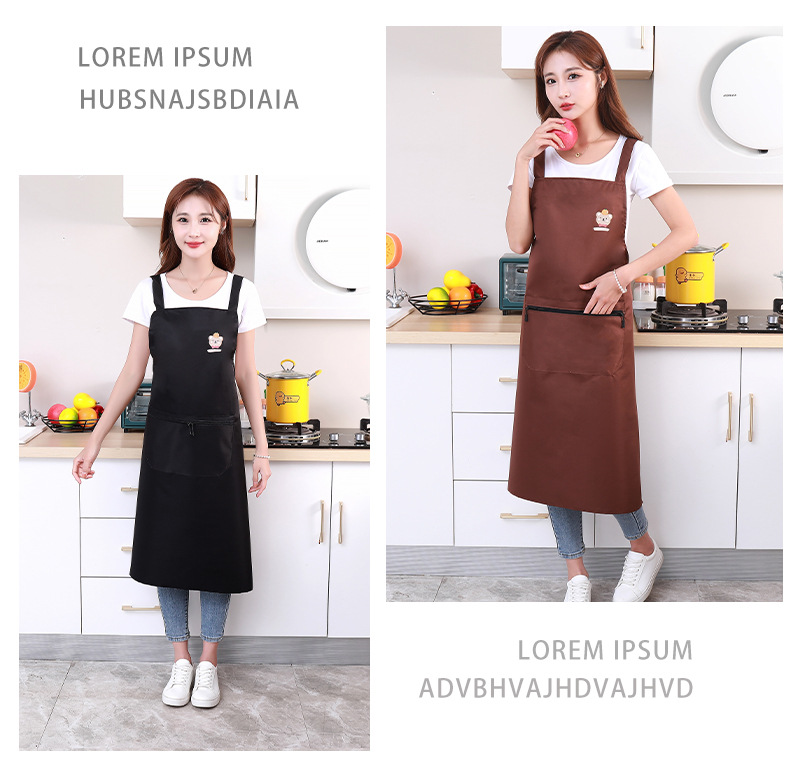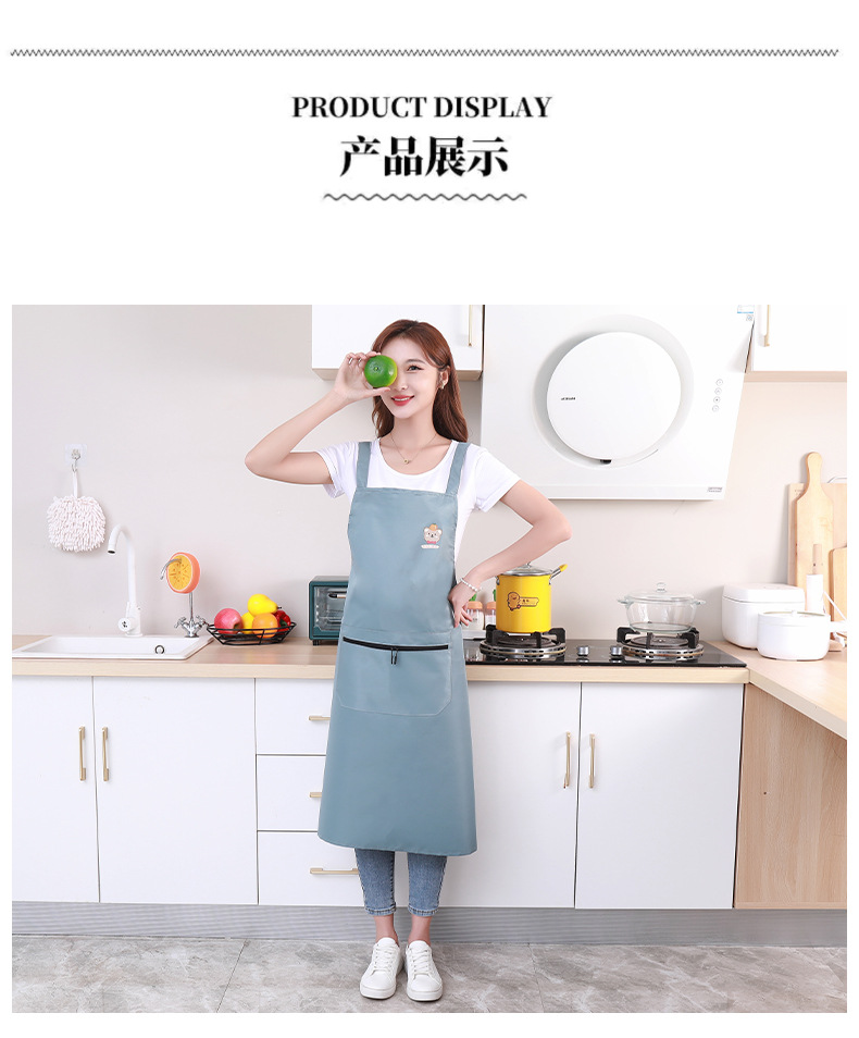 Men's apron lengthened, fatten, waterproof, oil-resistant, zipper pocket apron, kitchen, home, fashionable, stain-resistant, baking work clothes logo