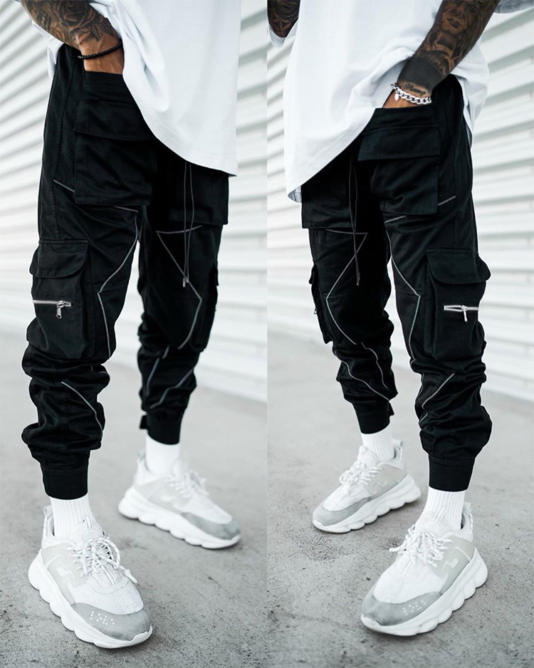 Men's autumn casual pants, men's large-sized Korean-style trendy brand multi-pocket cargo pants, men's trendy printed sport pants