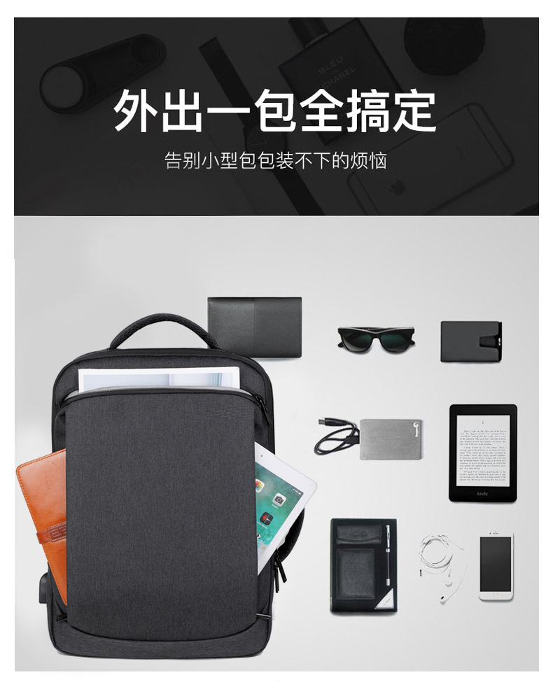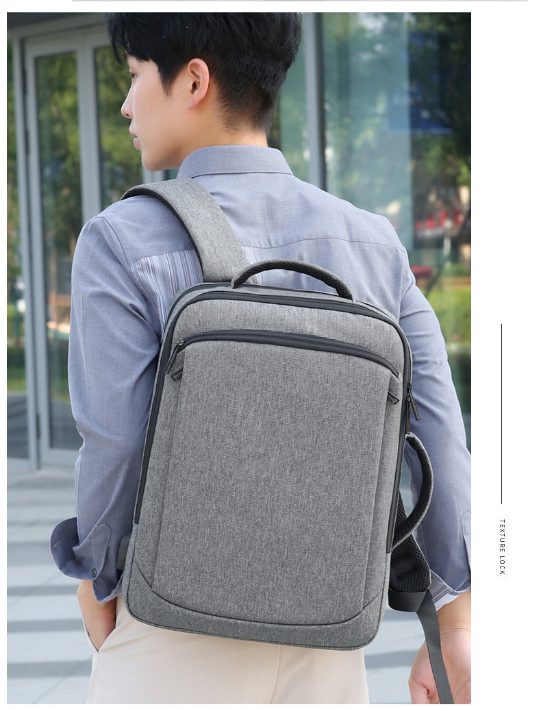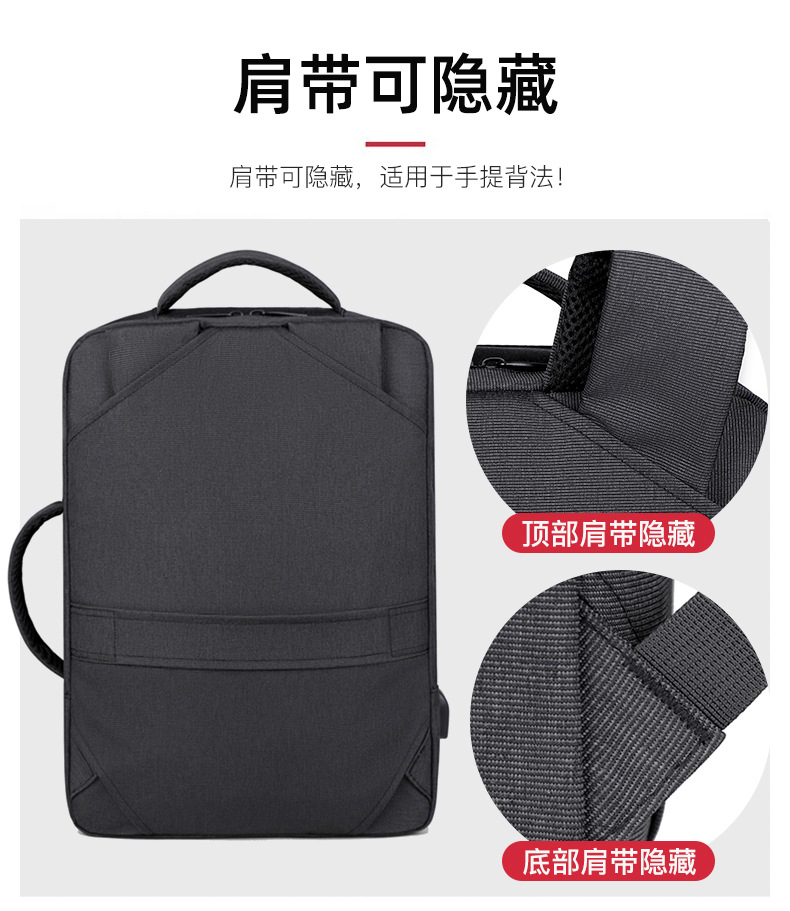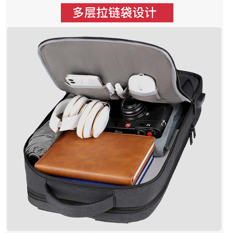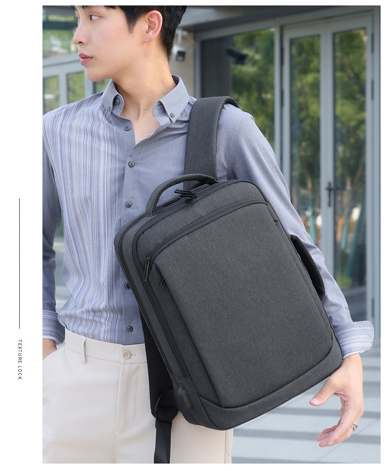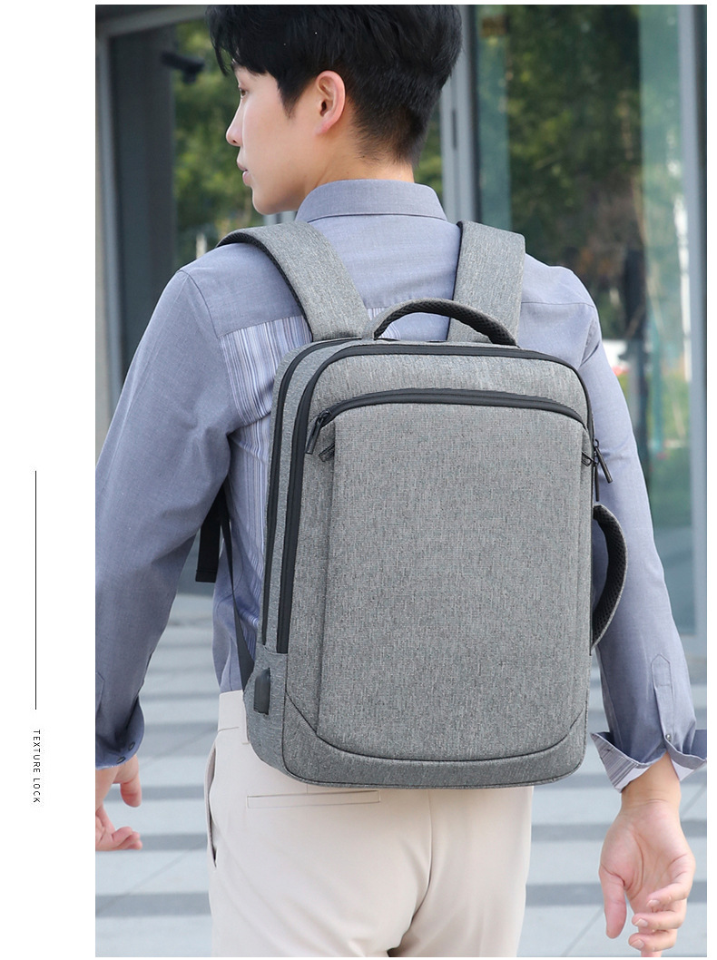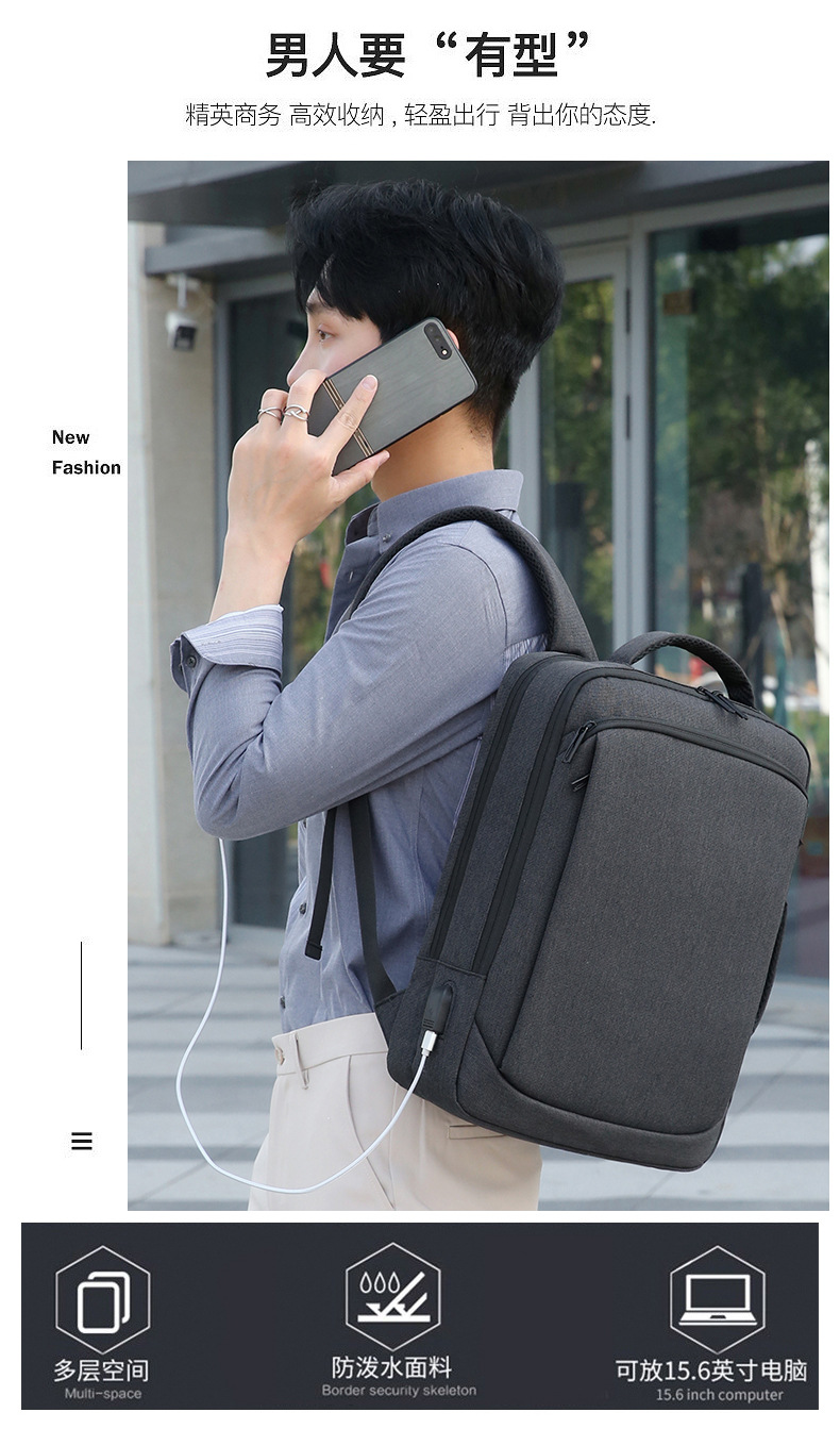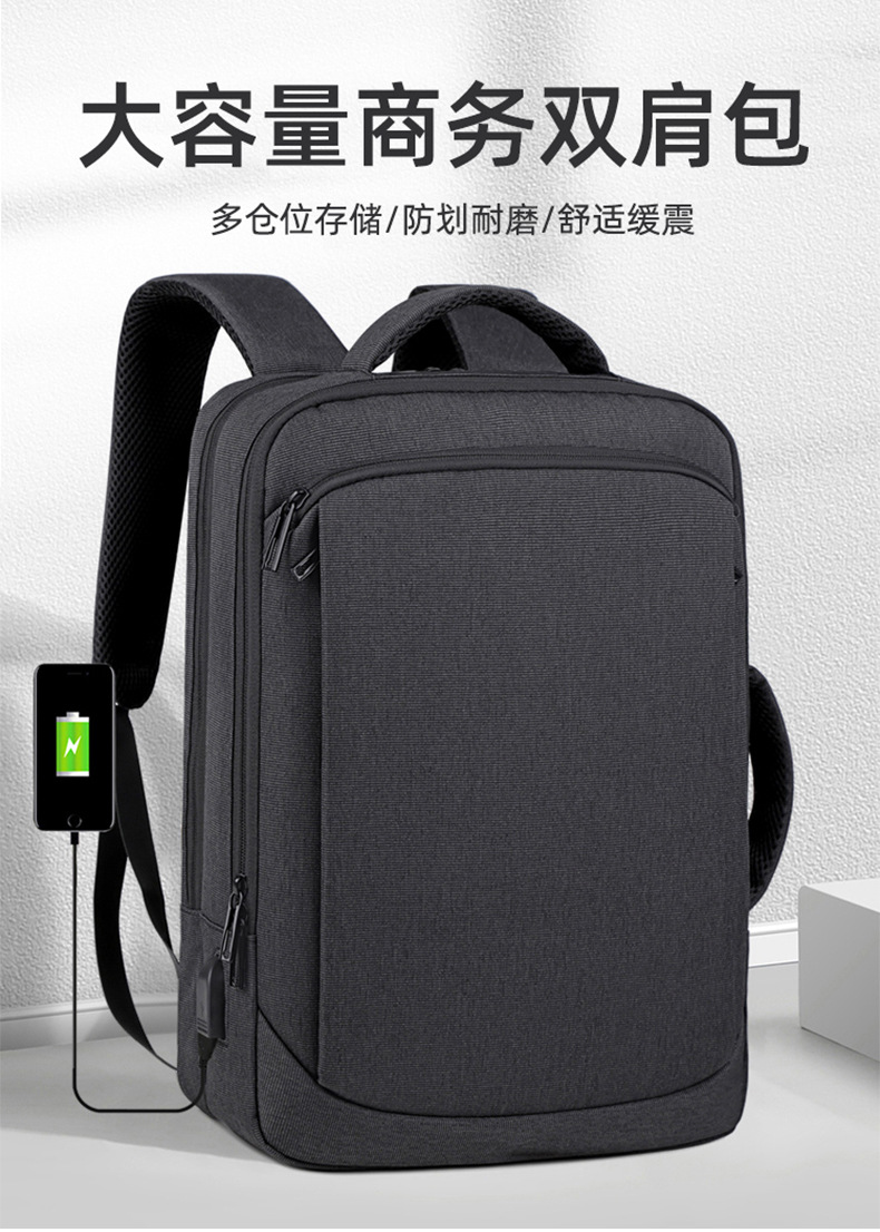 Men's backpack, computer bag, backpack, large capacity, double back, high-end feel, men's laptop, USB computer bag, double shoulder
