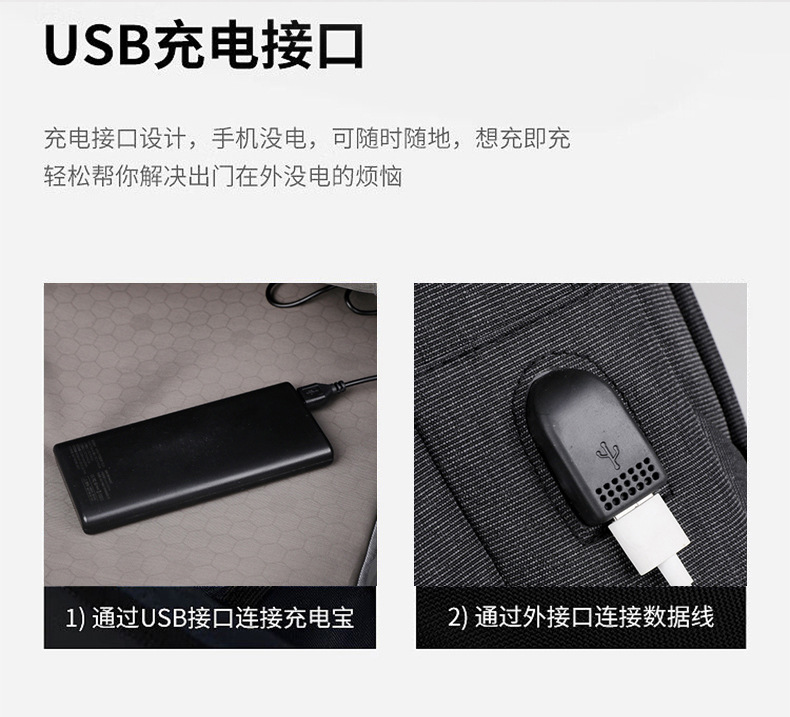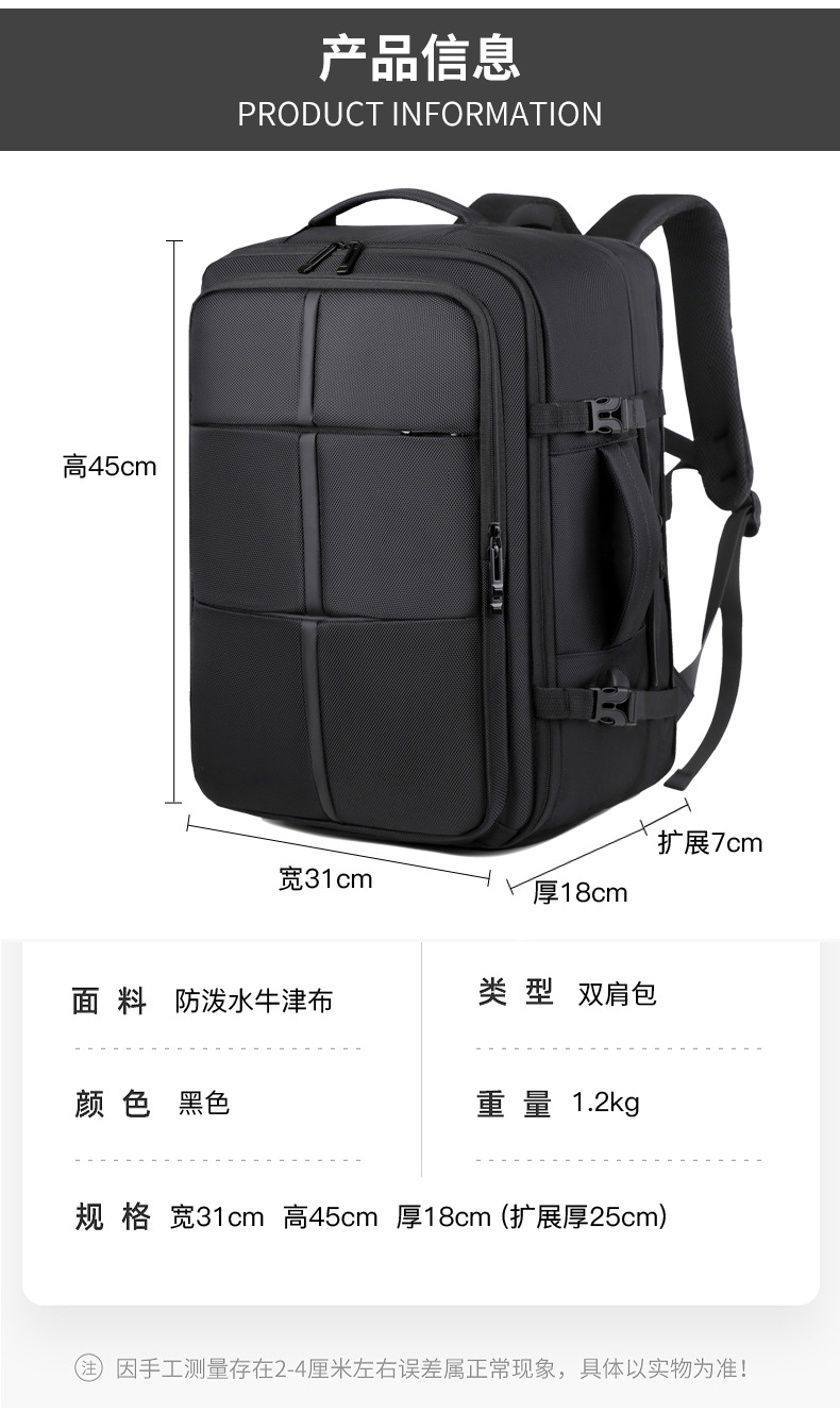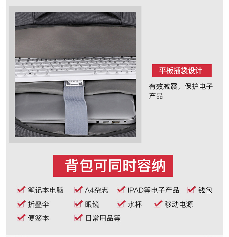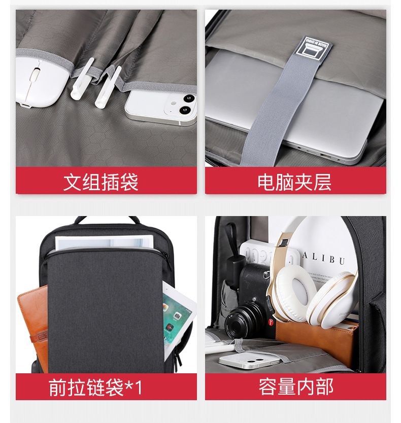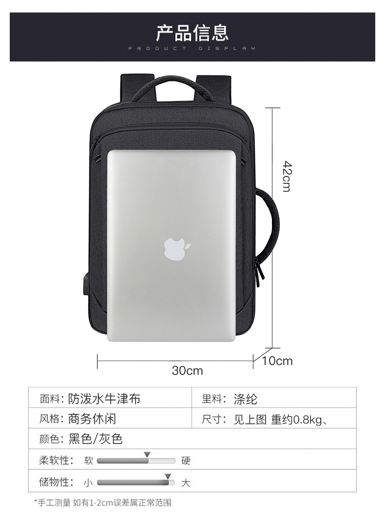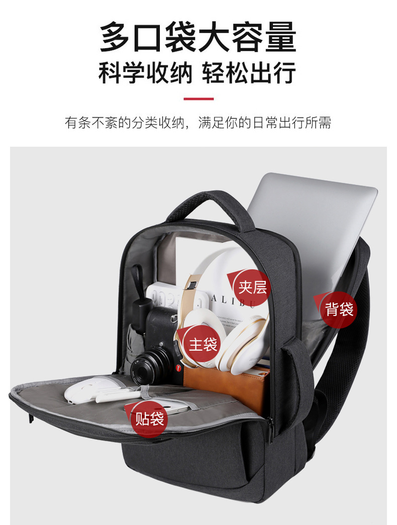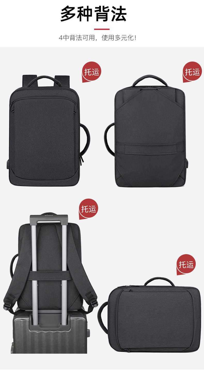 Men's backpack, computer bag, backpack, large capacity, double back, high-end feel, men's laptop, USB computer bag, double shoulder