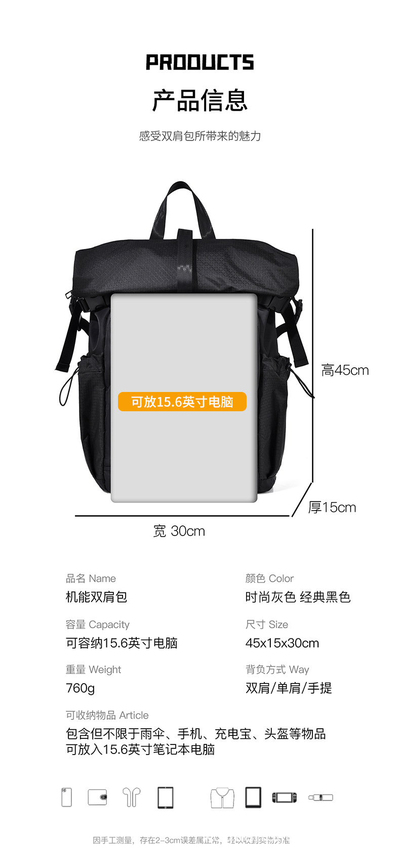 Men's backpack, functional travel, sports, outdoor hiking, cycling, large-capacity backpack, male college student computer schoolbag