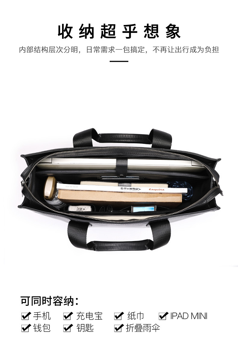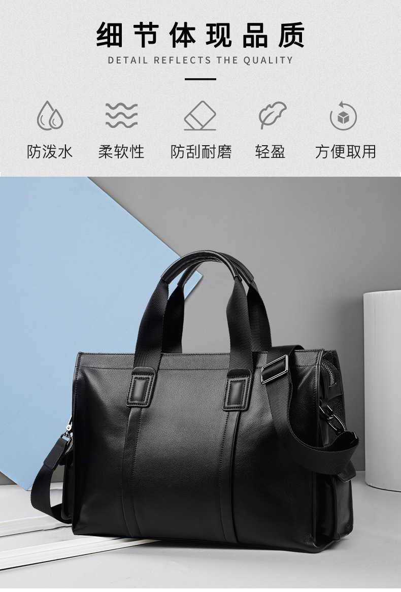 Men's bags, genuine leather men's handbags, cowhide computer bags, 14-inch business large-capacity crossbody briefcases, one-piece consignment