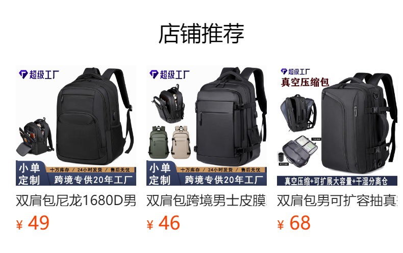 Men's black cross-border backpack, laptop bag, custom-made LOGO backpack manufacturer