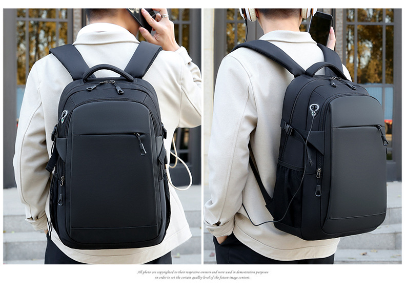 Men's black cross-border backpack, laptop bag, custom-made LOGO backpack manufacturer