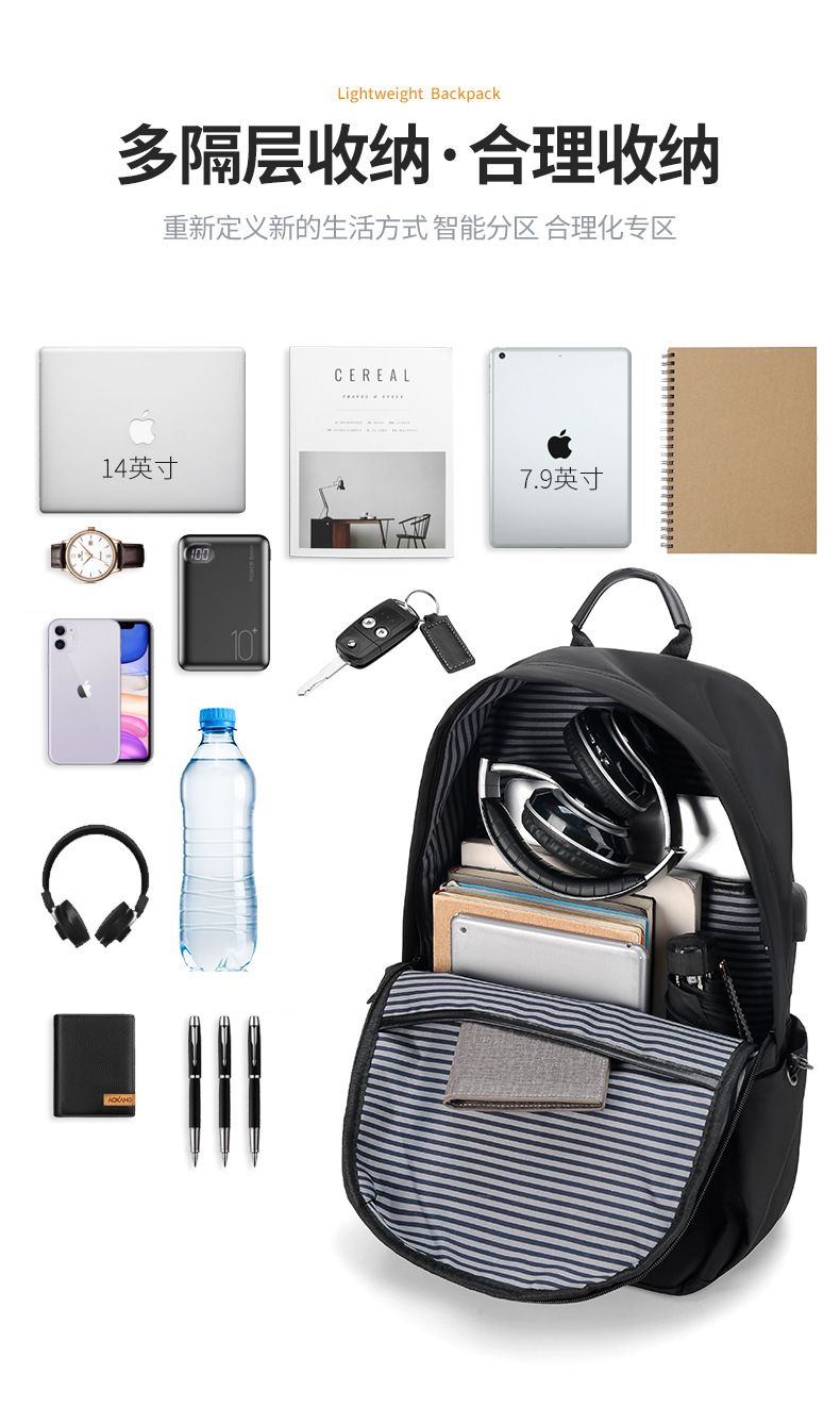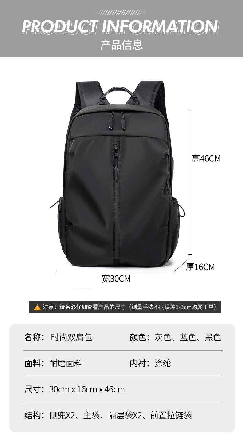 Men's casual large-capacity backpack, outdoor double-back logo printed computer bag, travel student cross-border schoolbag
