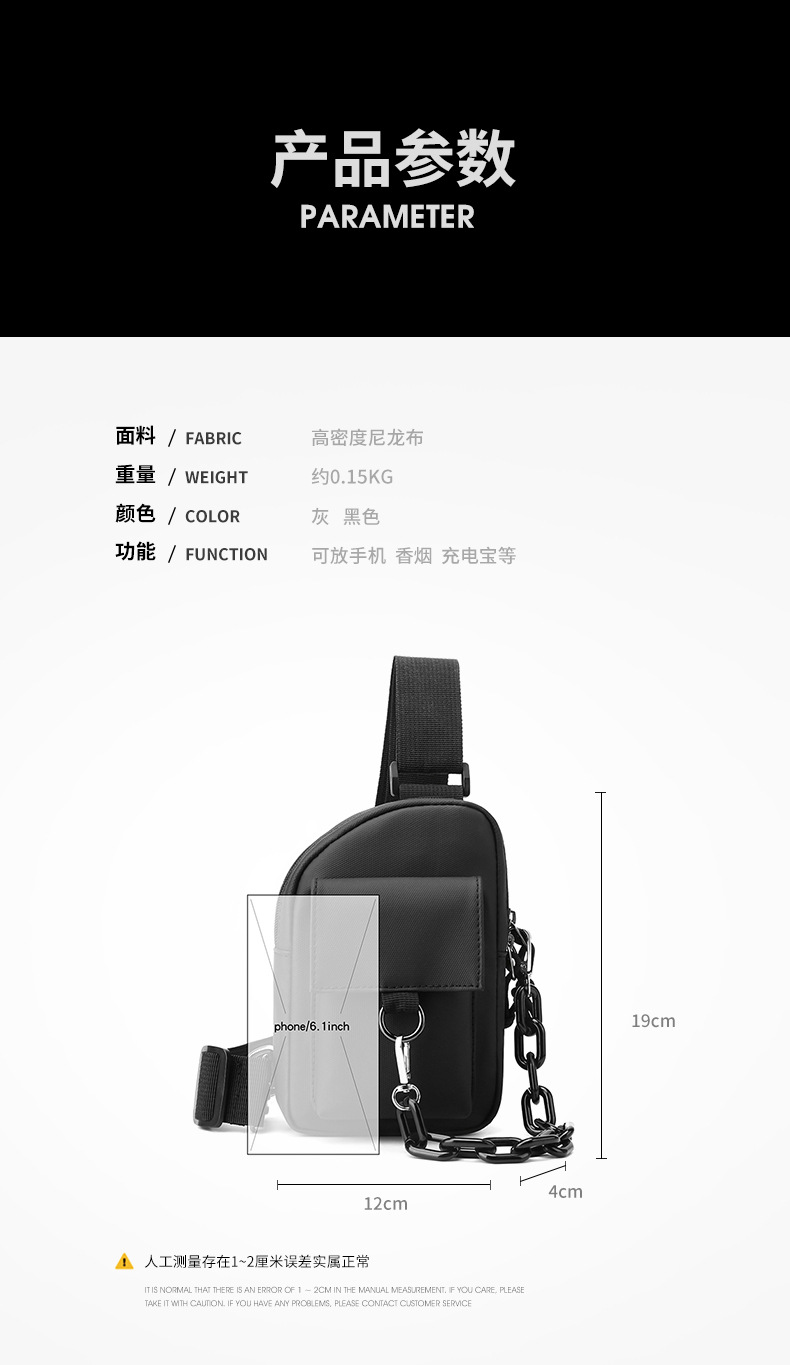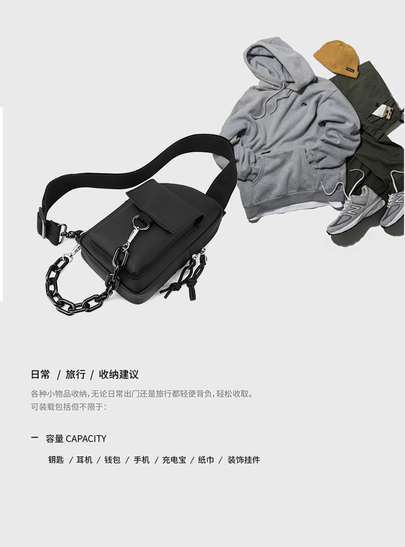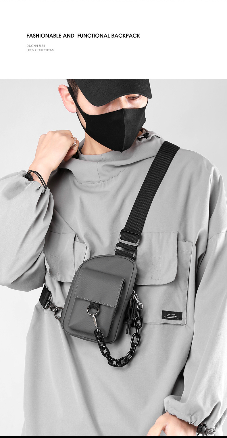 Men's crossbody bag, casual men's bag, multi-functional chest bag, Japanese single-shoulder bag, summer simple backpack, trendy brand small bag