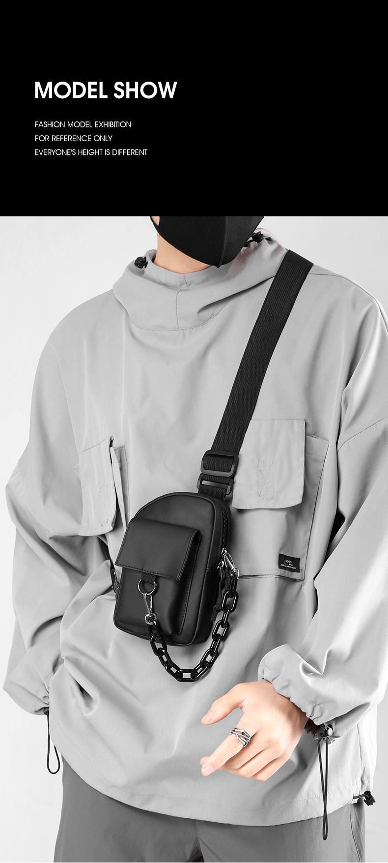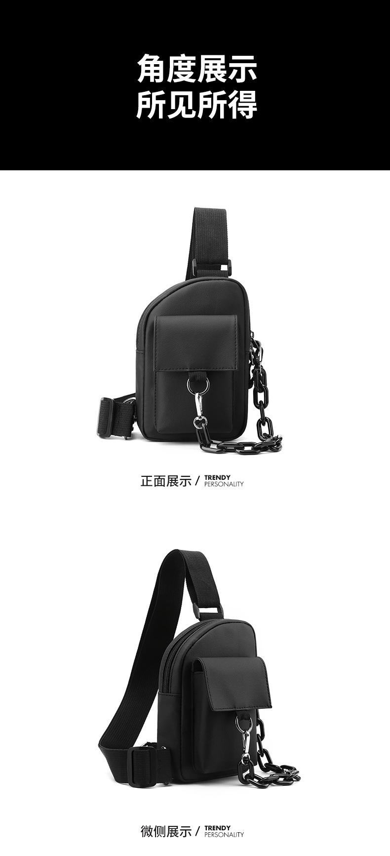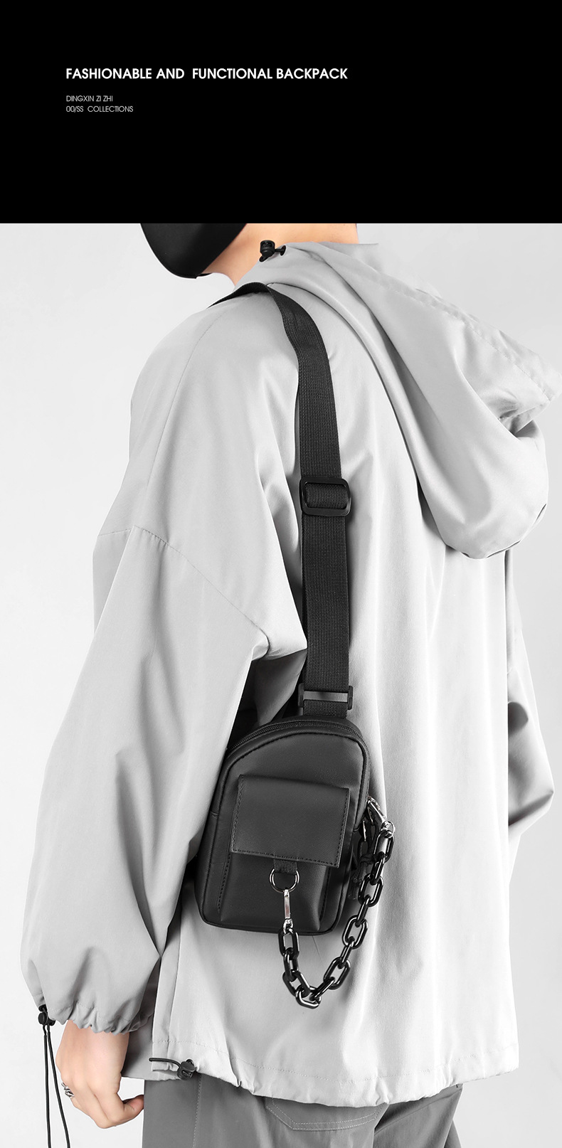 Men's crossbody bag, casual men's bag, multi-functional chest bag, Japanese single-shoulder bag, summer simple backpack, trendy brand small bag