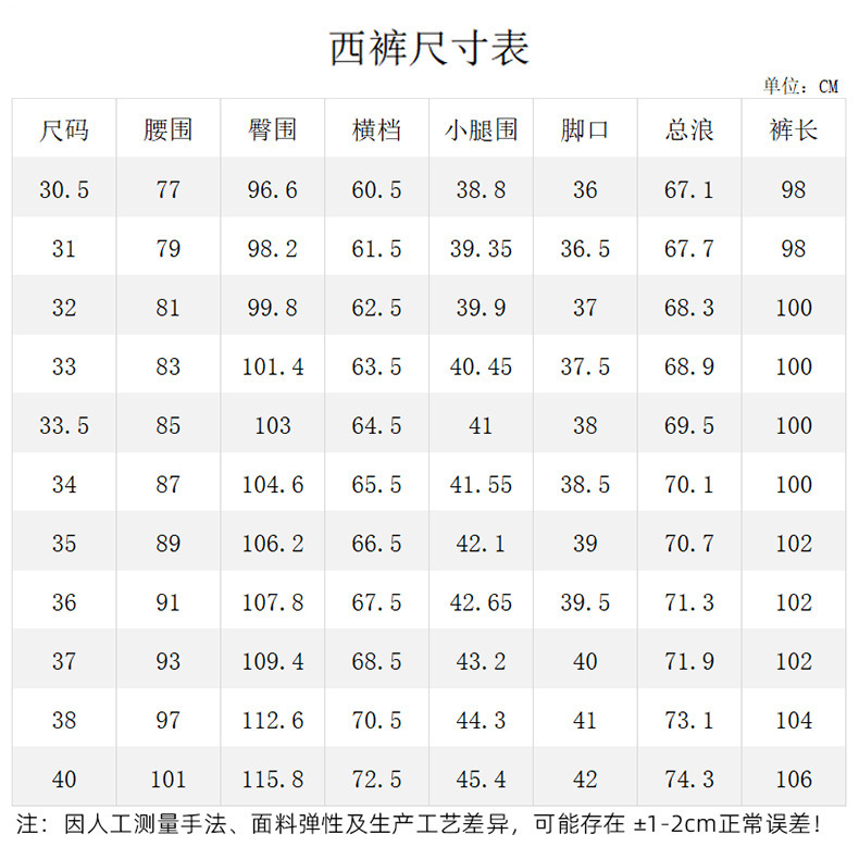 Due to different heights and requirements, the dress pants are left untrimmed by default. If you need to trim the edges, please consult customer service in advance. Once the edges are trimmed and cut, they are non-refundable and non-exchangeable!