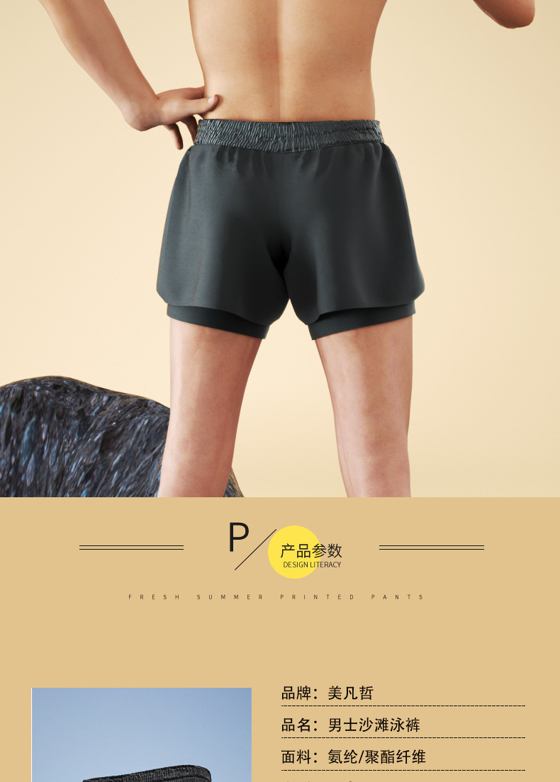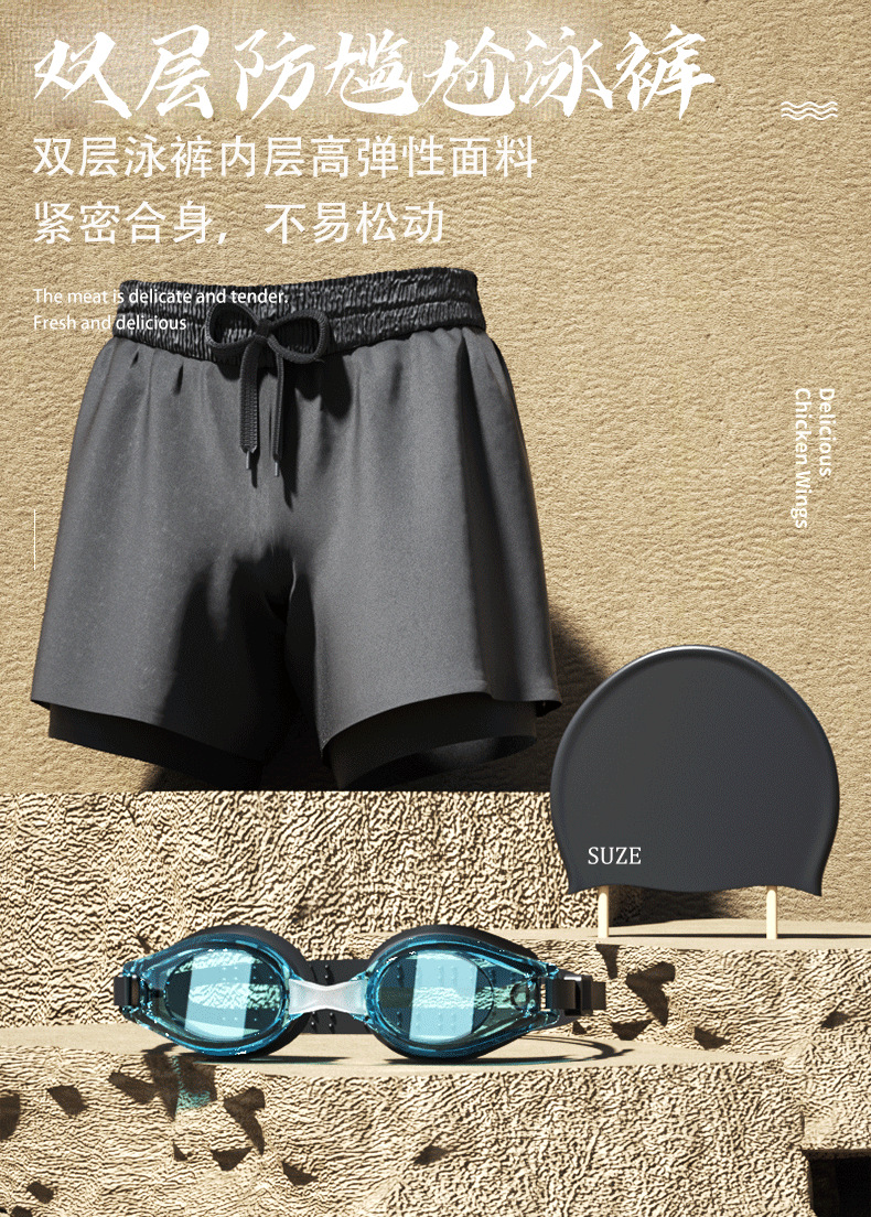 Men's double-layer swimming trunks, flat-angle adult quick-drying anti-embarrassment swimming trunks, beach trunks, hot spring swimming equipment set