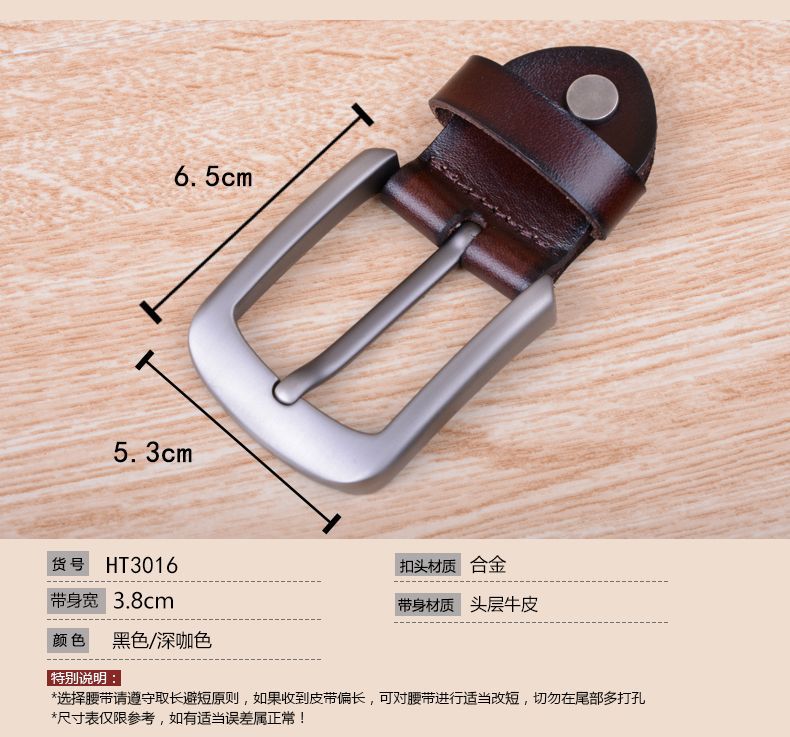 Men's genuine leather pin buckle belt buckle, top layer cowhide belt buckle, belt clip suitable for 3.8cm width