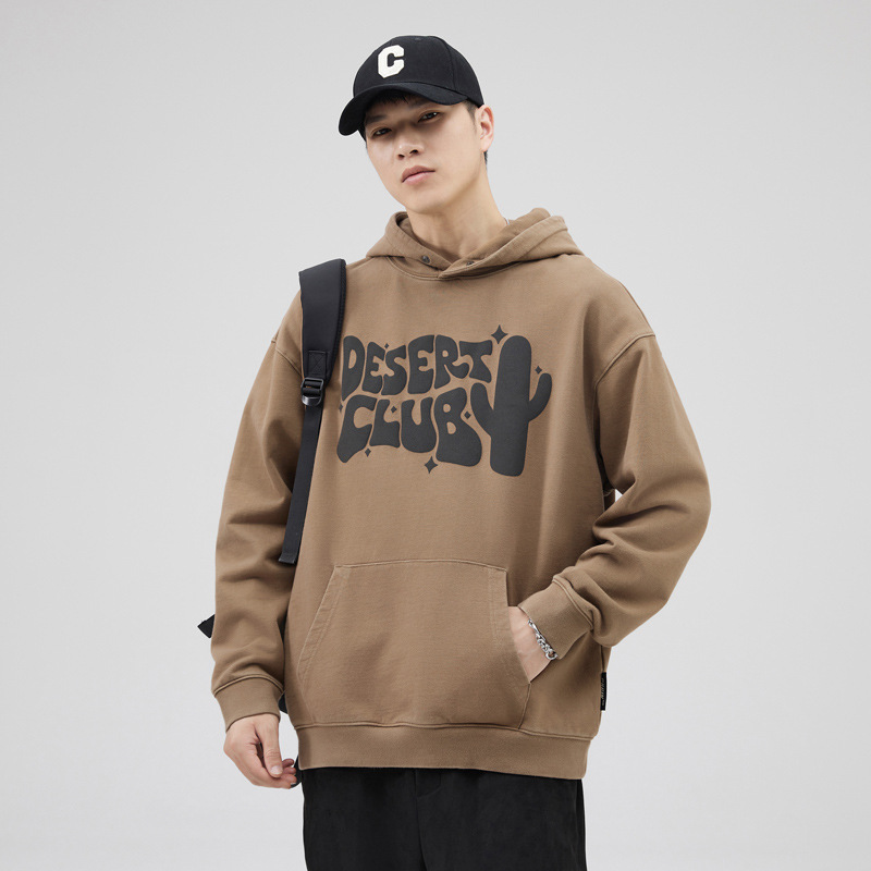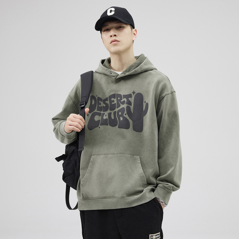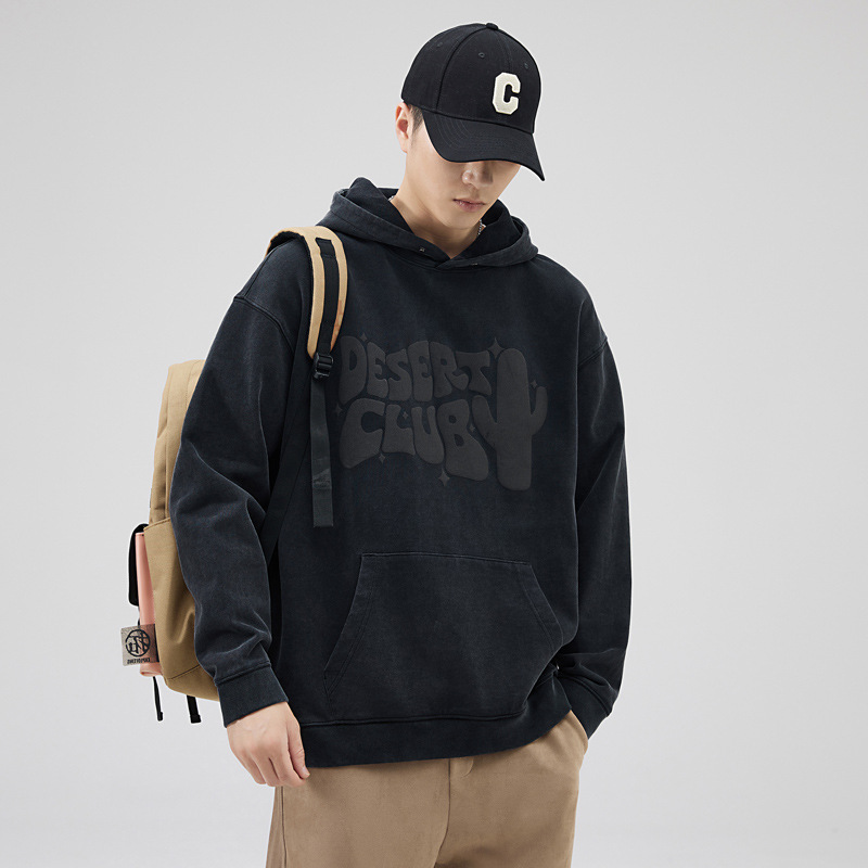 Men's hooded sweatshirt, heavyweight men's spring and autumn base layer shirt, American retro trendy brand men's coat, couple trendy men's hoodie