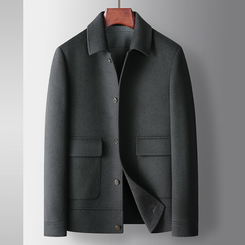 Men's jacket for autumn and winter, handcrafted double-sided wool lapel work jacket, business casual wool thickened coat