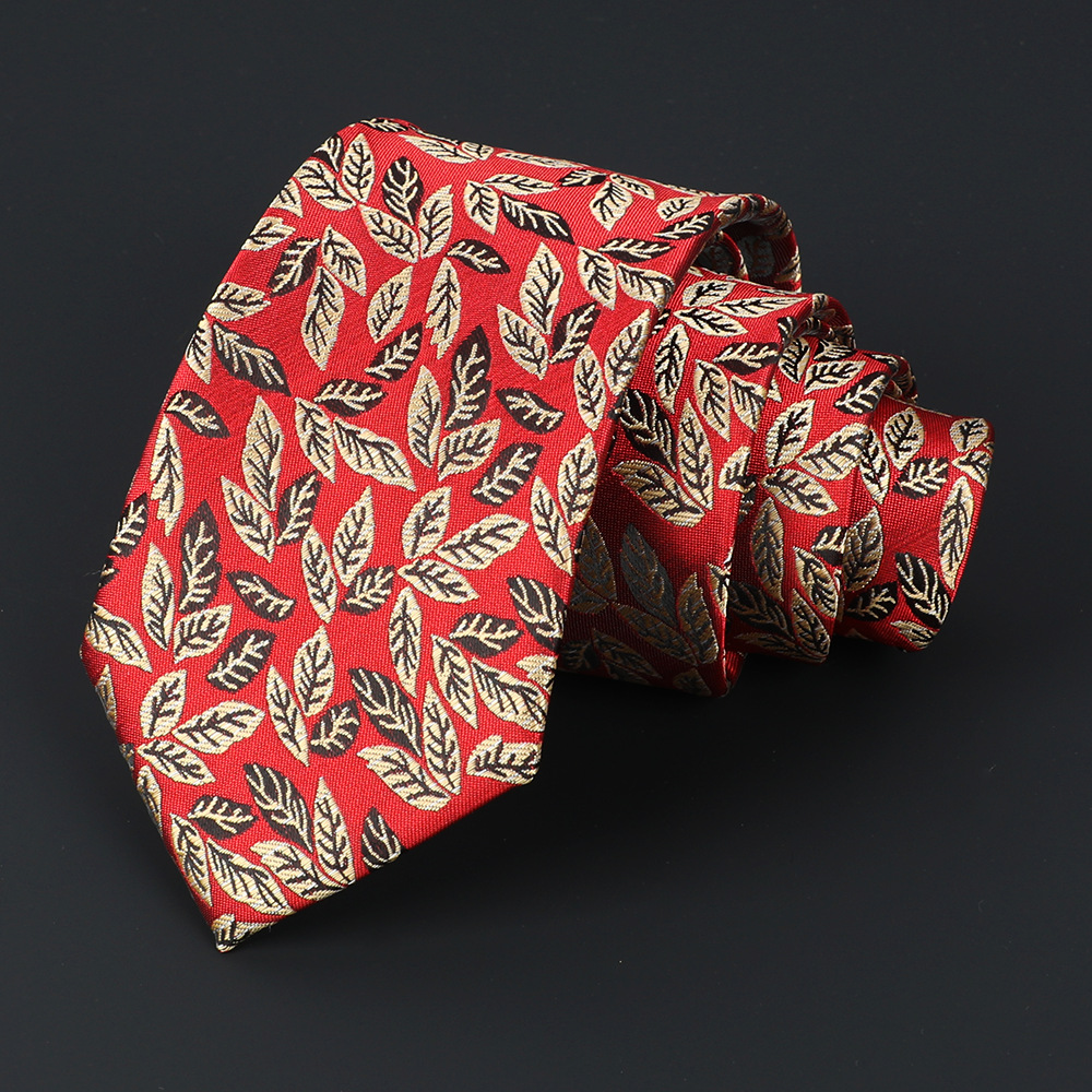 Men's jacquard embroidery red tie, men's high-end hand-tied tie, formal wear custom manufacturer, wholesale in stock
