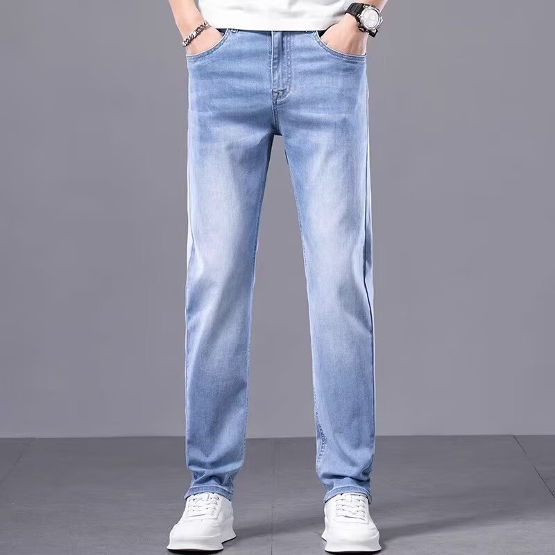 Men's jeans 2024 Spring light-colored trendy brand, elastic, high-end, fashionable and versatile, casual straight-leg long pants, Xintang