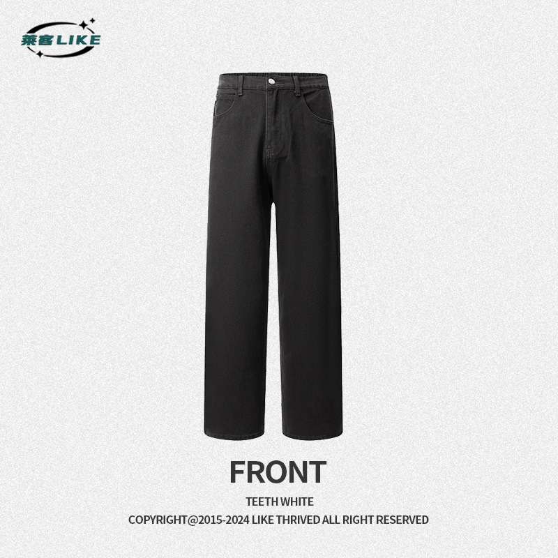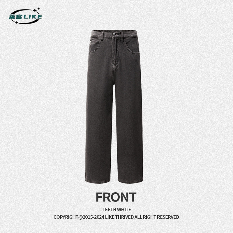 Men's jeans, American street fashion brand denim pants, men's loose and high-end style, versatile washable denim straight-leg pants