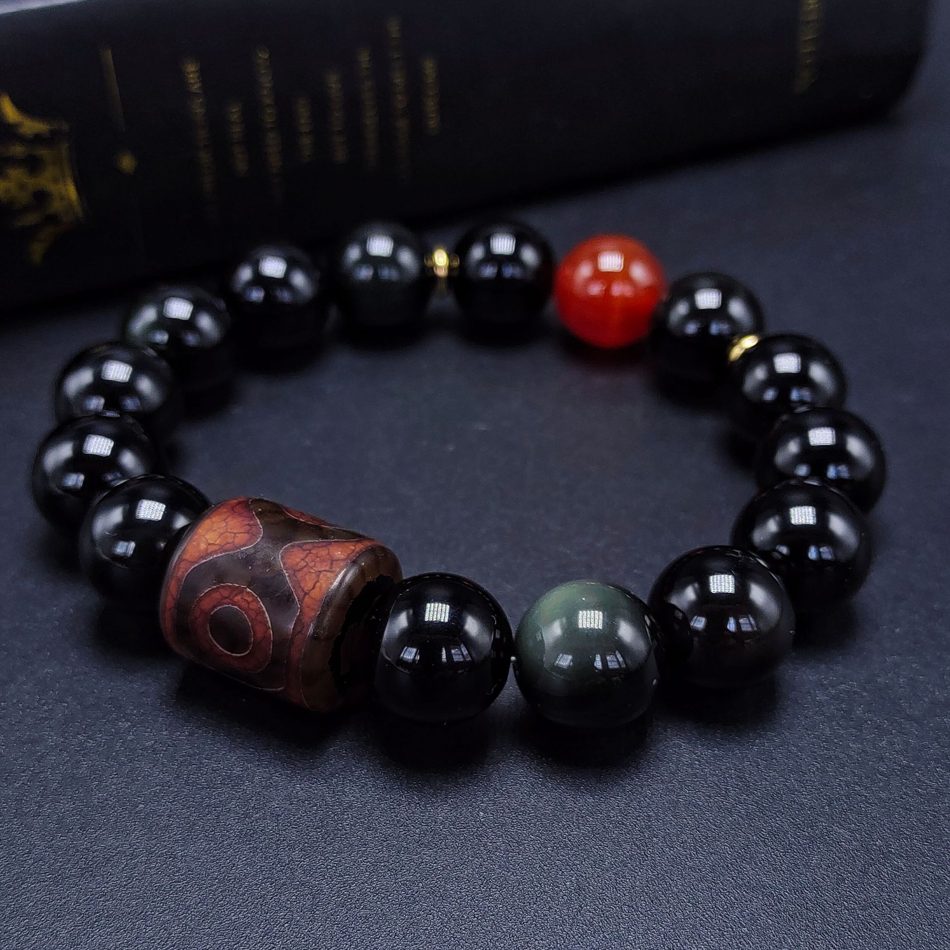 Men's natural obsidian tiger's eye stone bracelet, six-character maxim men's bracelet, cultural and artistic jewelry