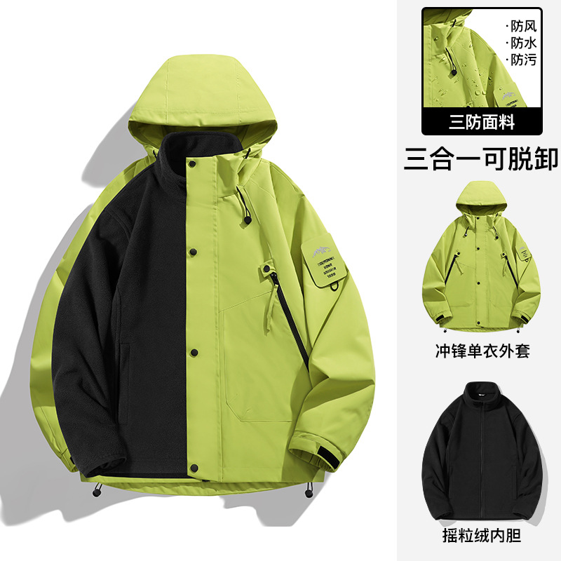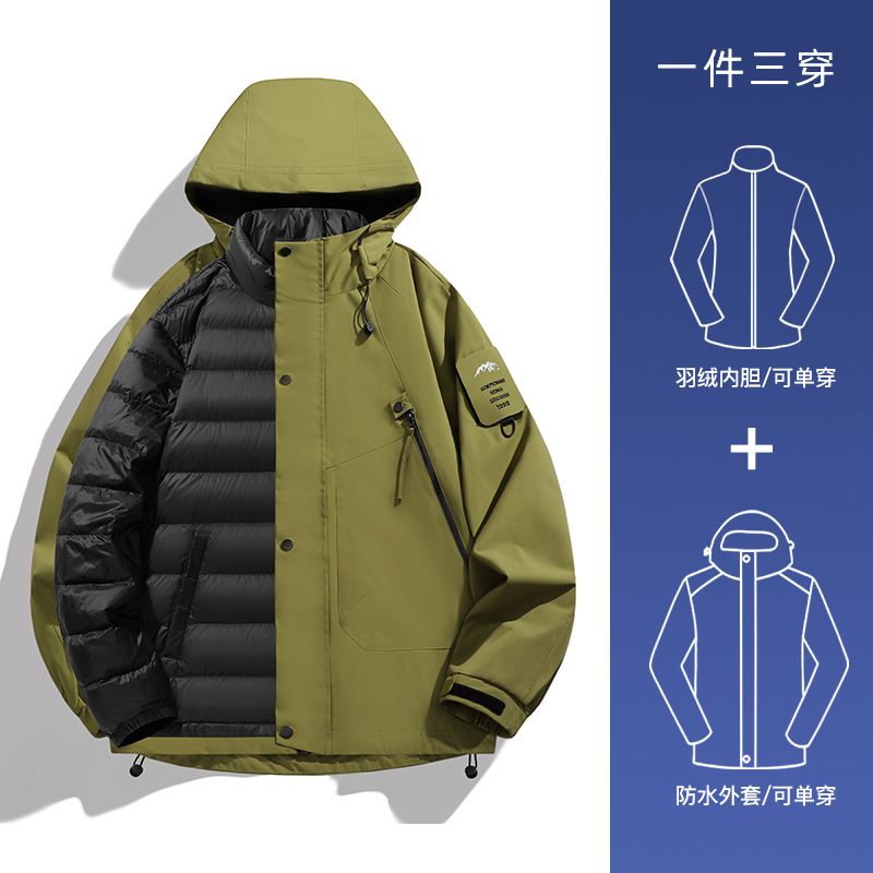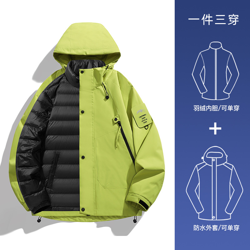 Men's outdoor windbreaker with a down inner liner, three-in-one windproof, waterproof, thickened and warm workwear, and women's mountaineering suit