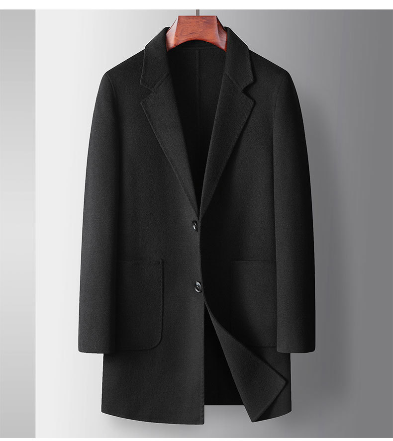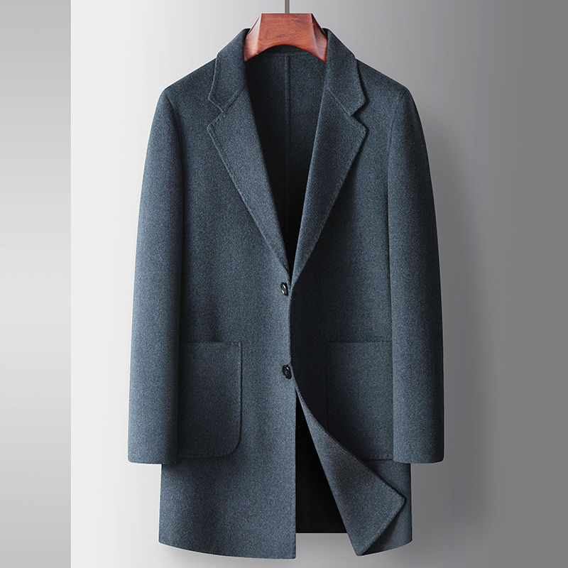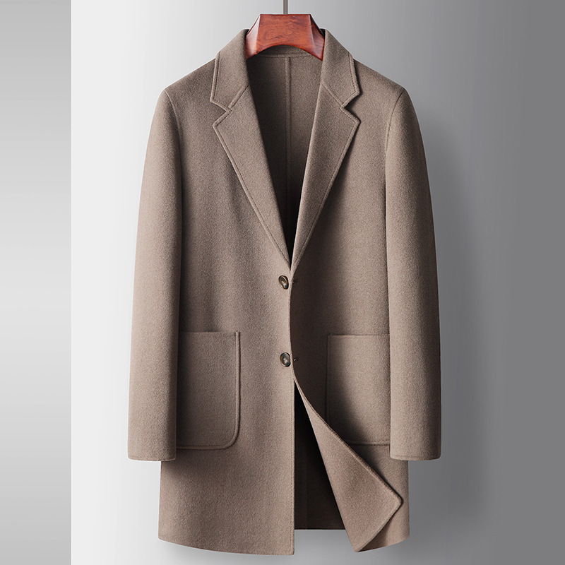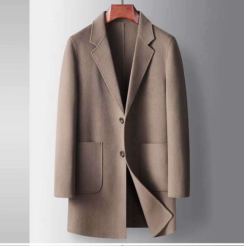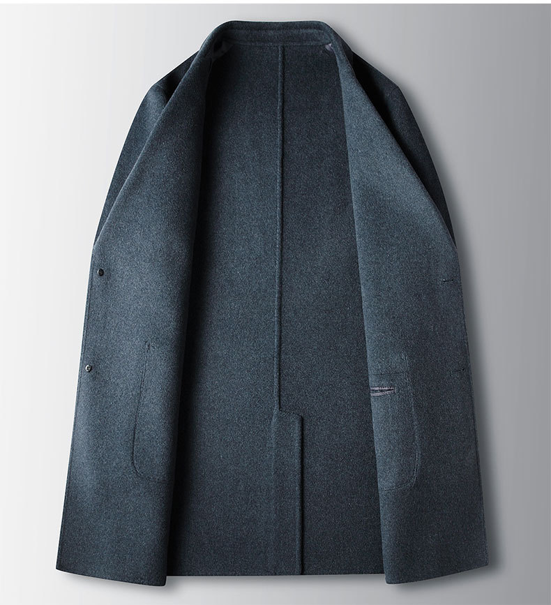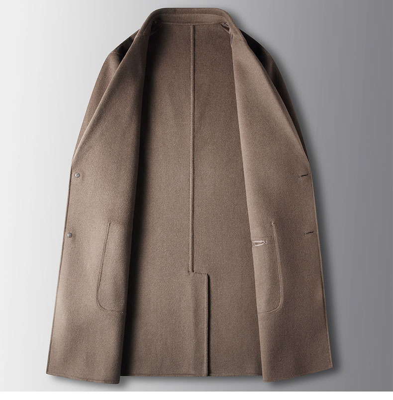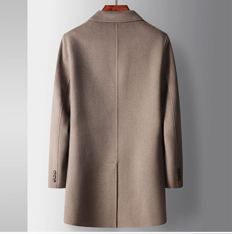 Men's overcoat 2022 Autumn/winter handmade double-sided woolen trench coat, solid color casual mid-length woolen coat for middle-aged and young people
