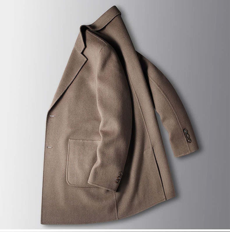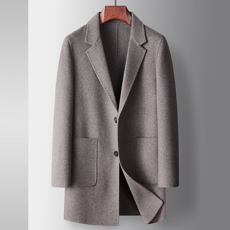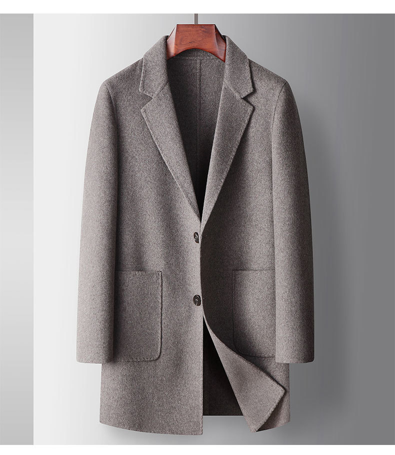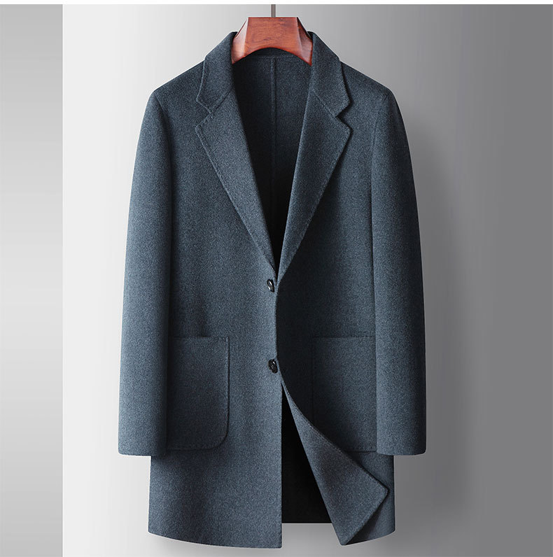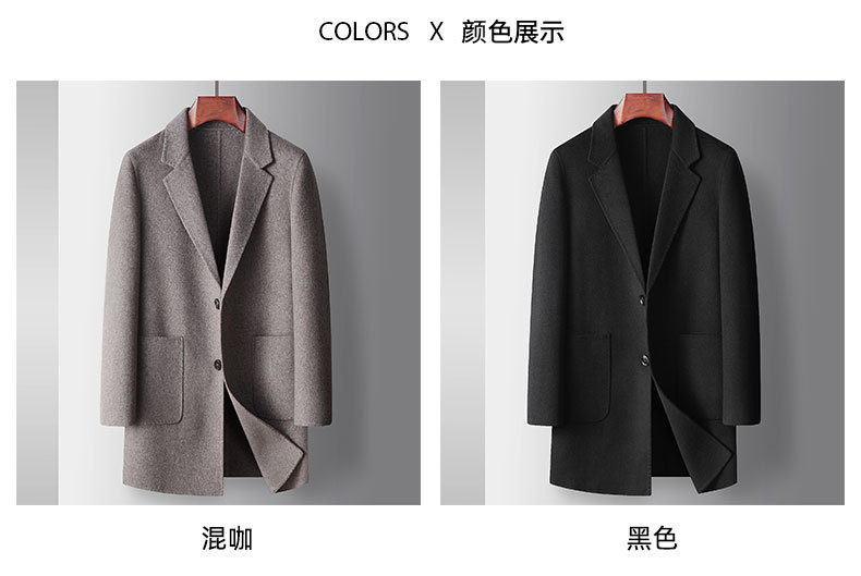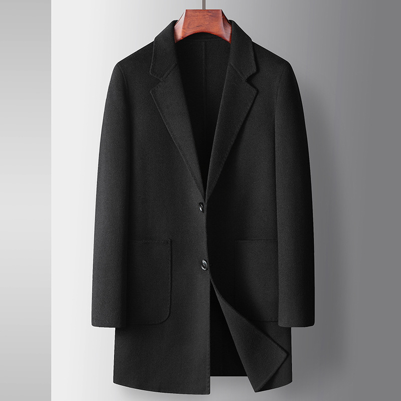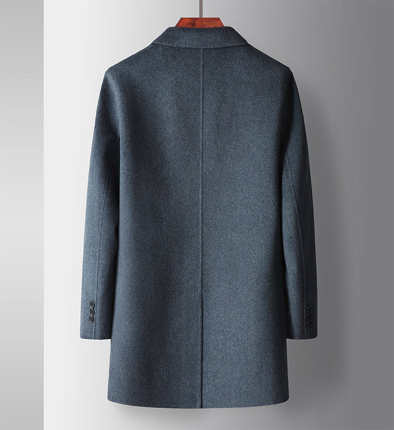 Men's overcoat 2022 Autumn/winter handmade double-sided woolen trench coat, solid color casual mid-length woolen coat for middle-aged and young people