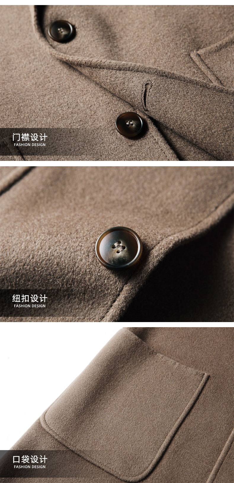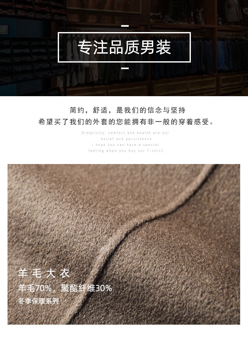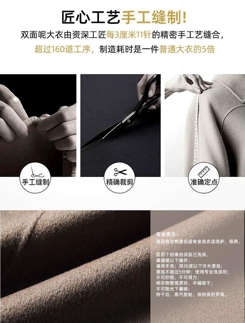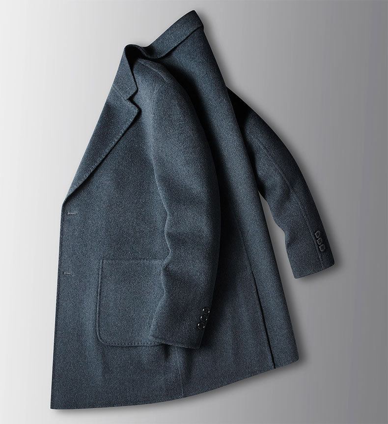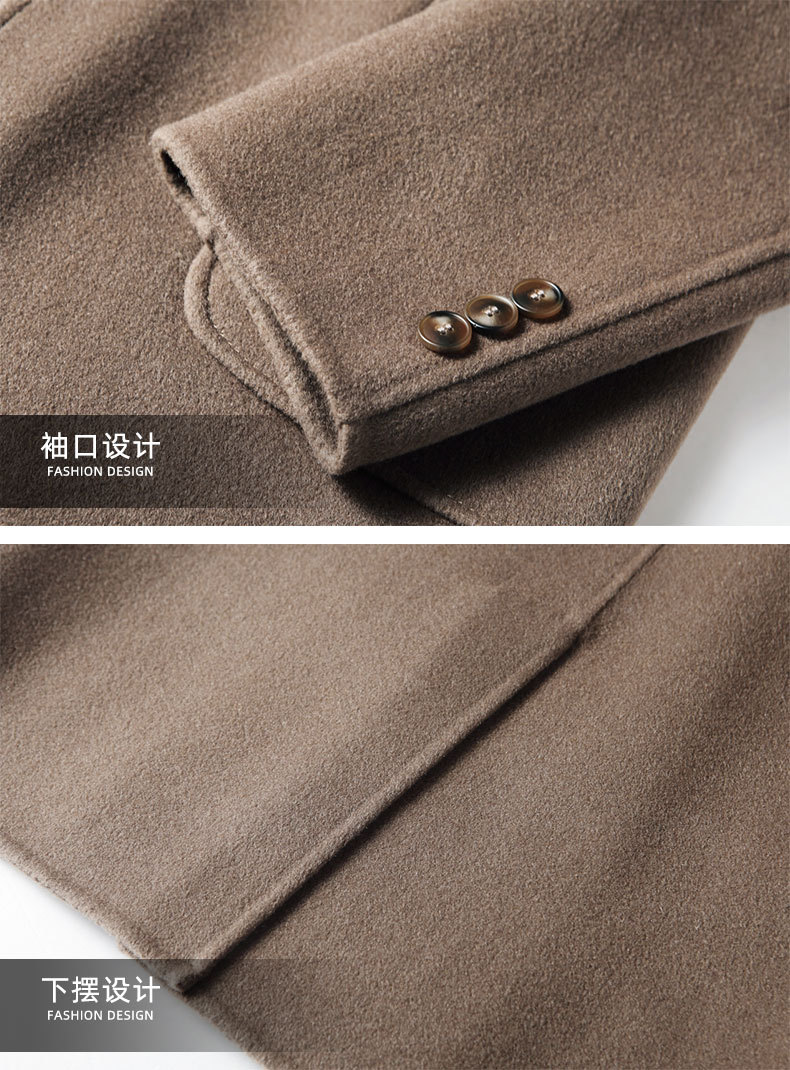 Men's overcoat 2022 Autumn/winter handmade double-sided woolen trench coat, solid color casual mid-length woolen coat for middle-aged and young people